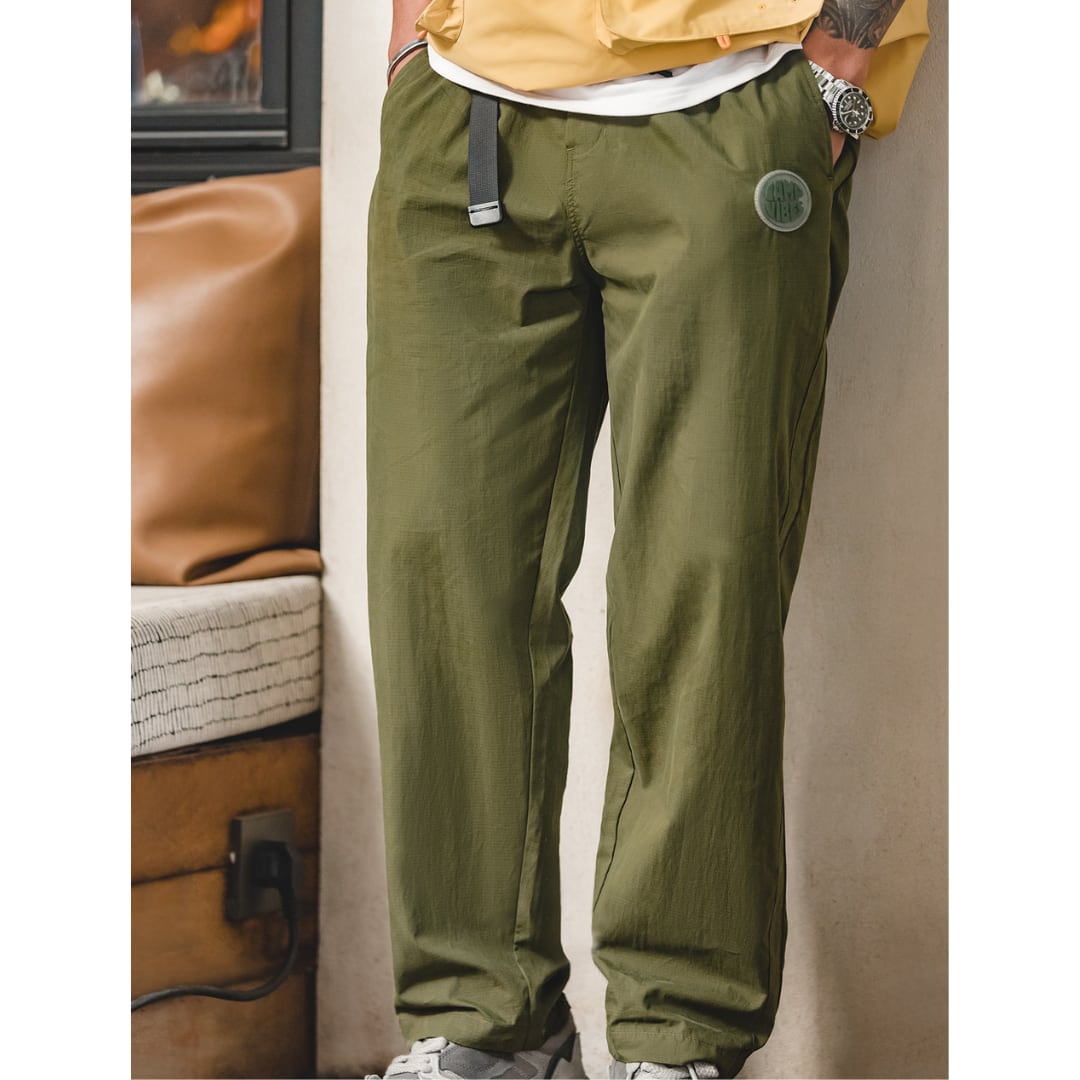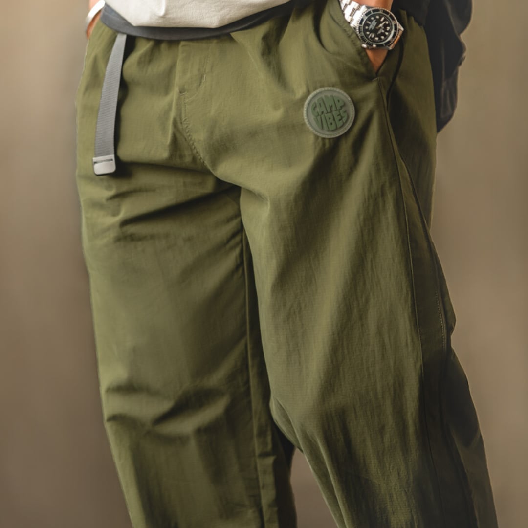 テーパードシルエットが美しいパンツ。