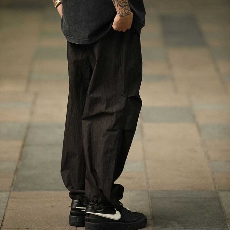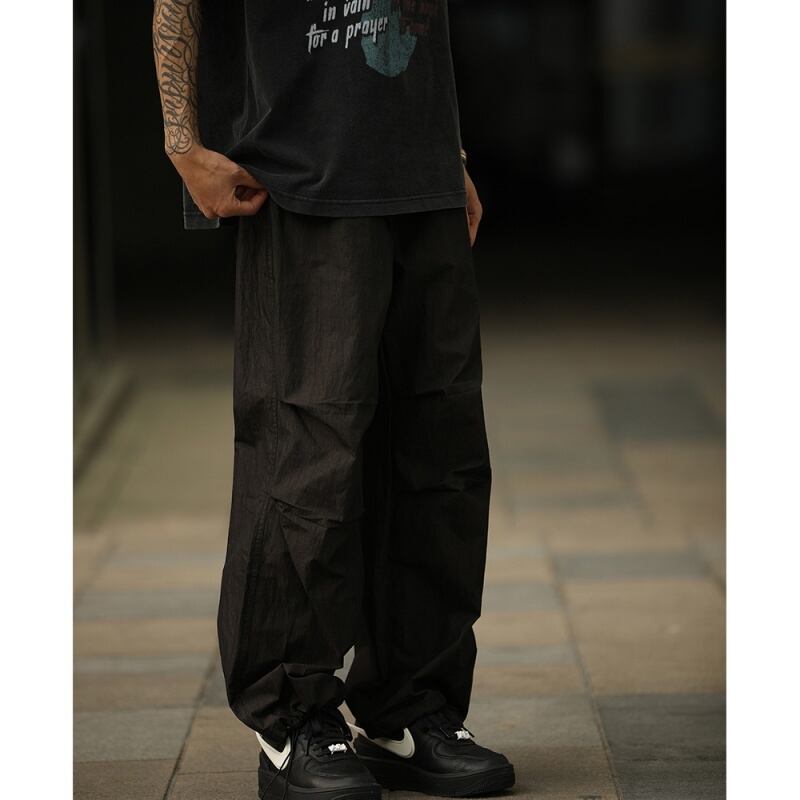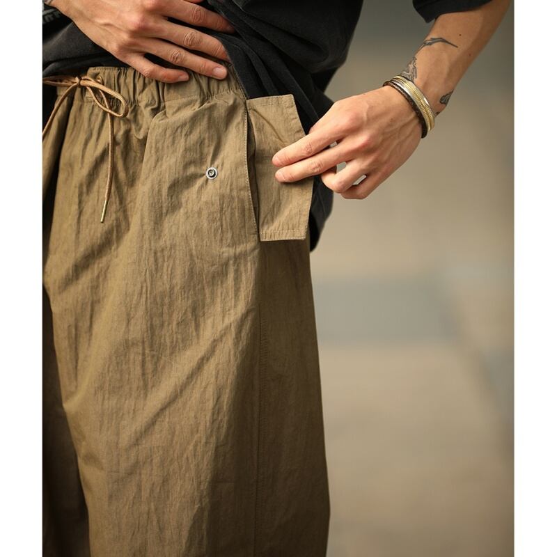 膝タック入りワイドレッグパラシュートパンツ A18994