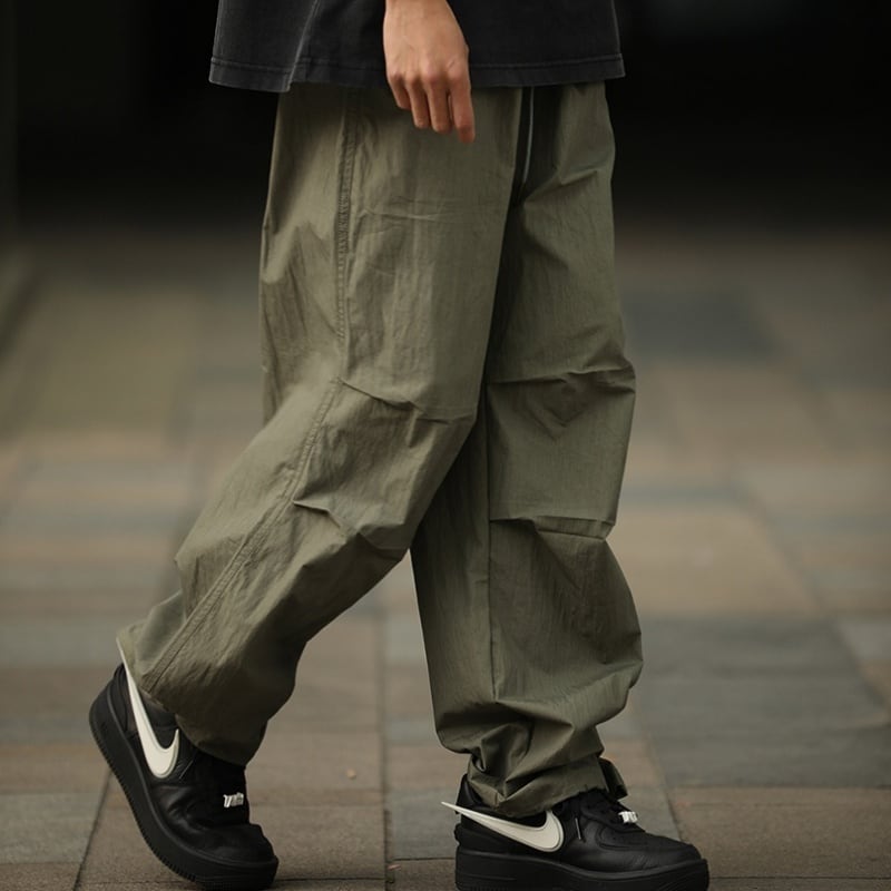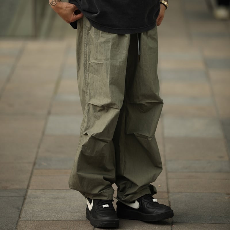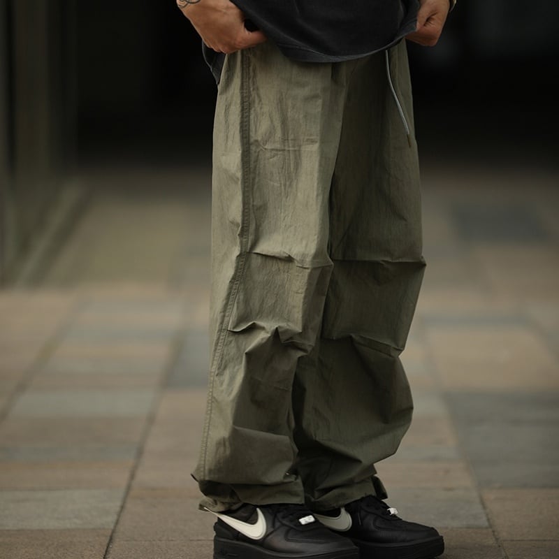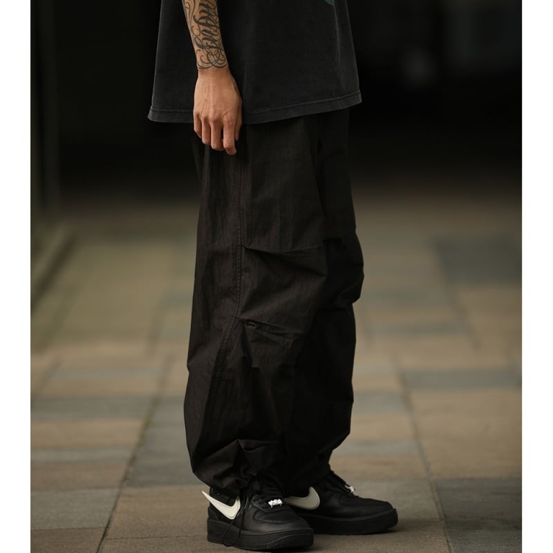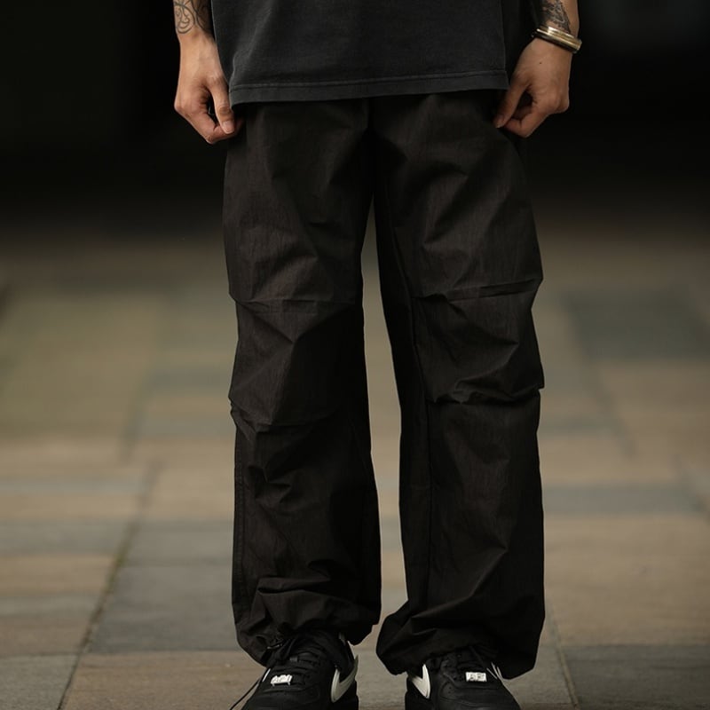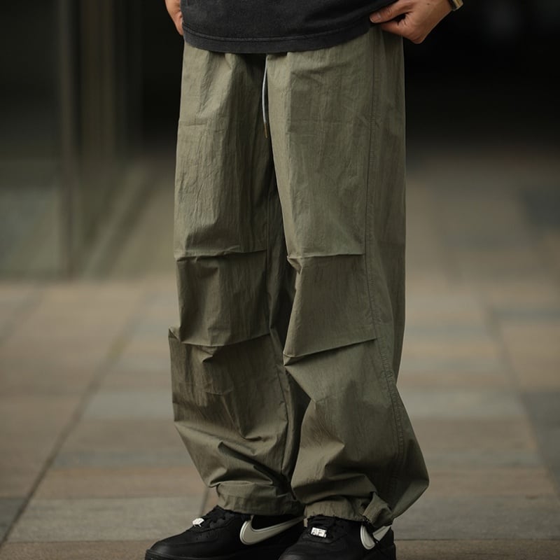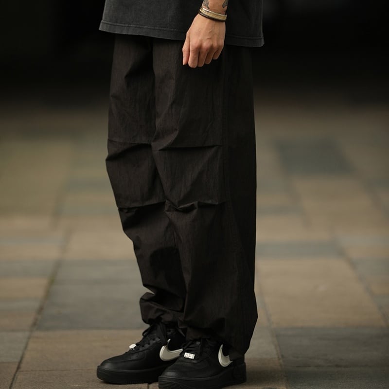 タックが作る自然な膨らみとボリューム感が特徴のパラシュートパンツです。