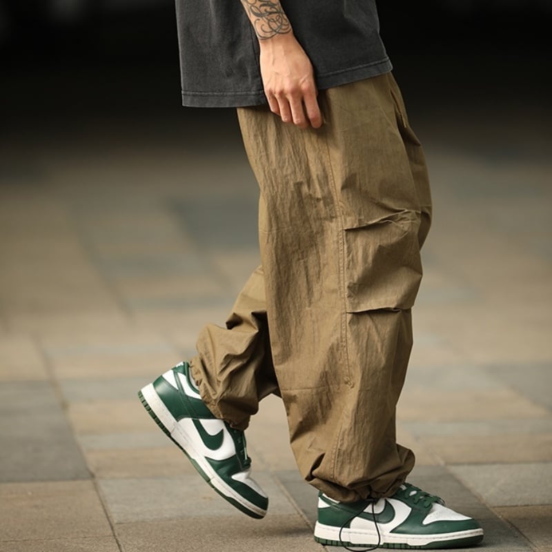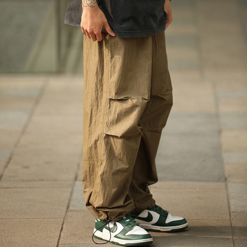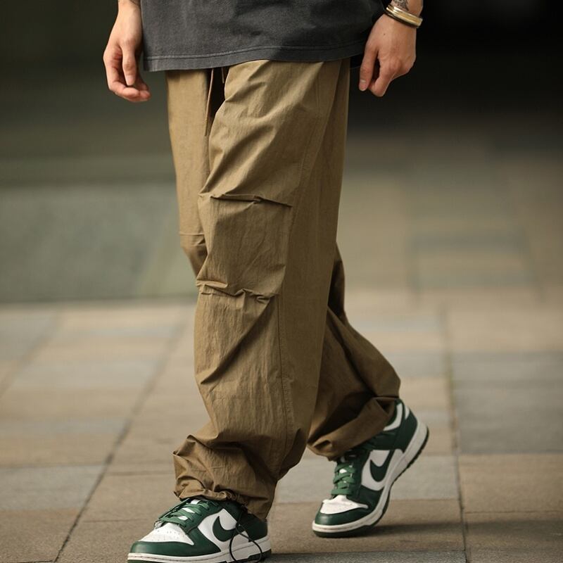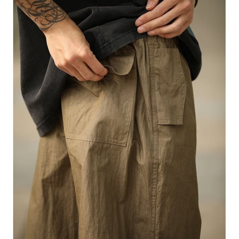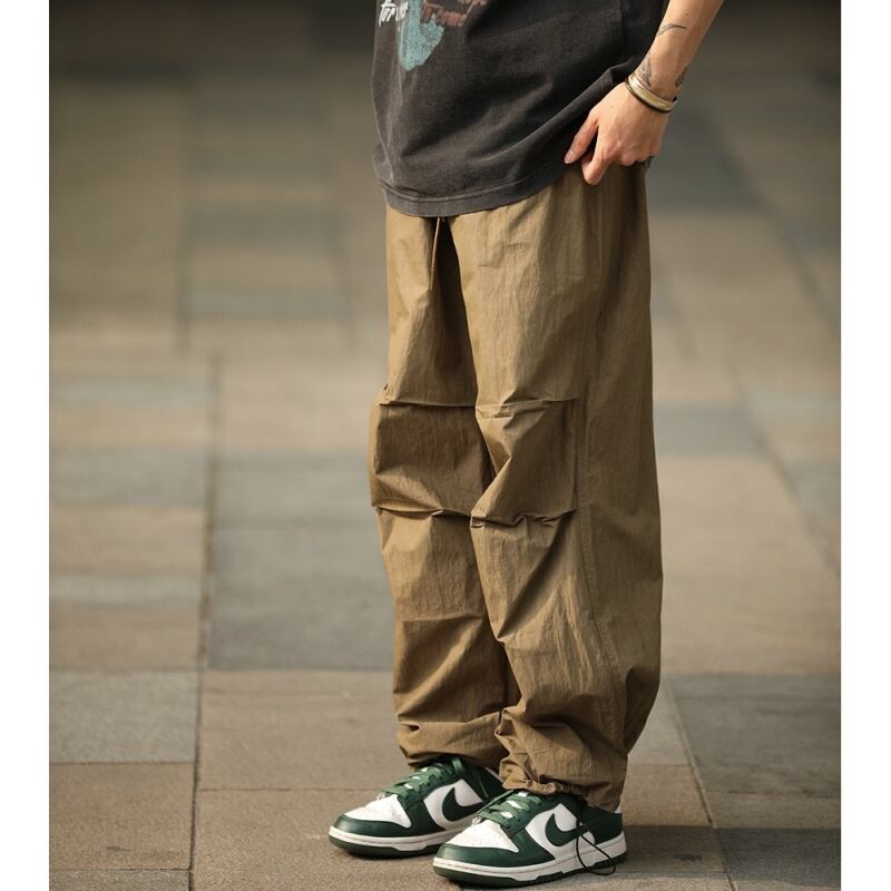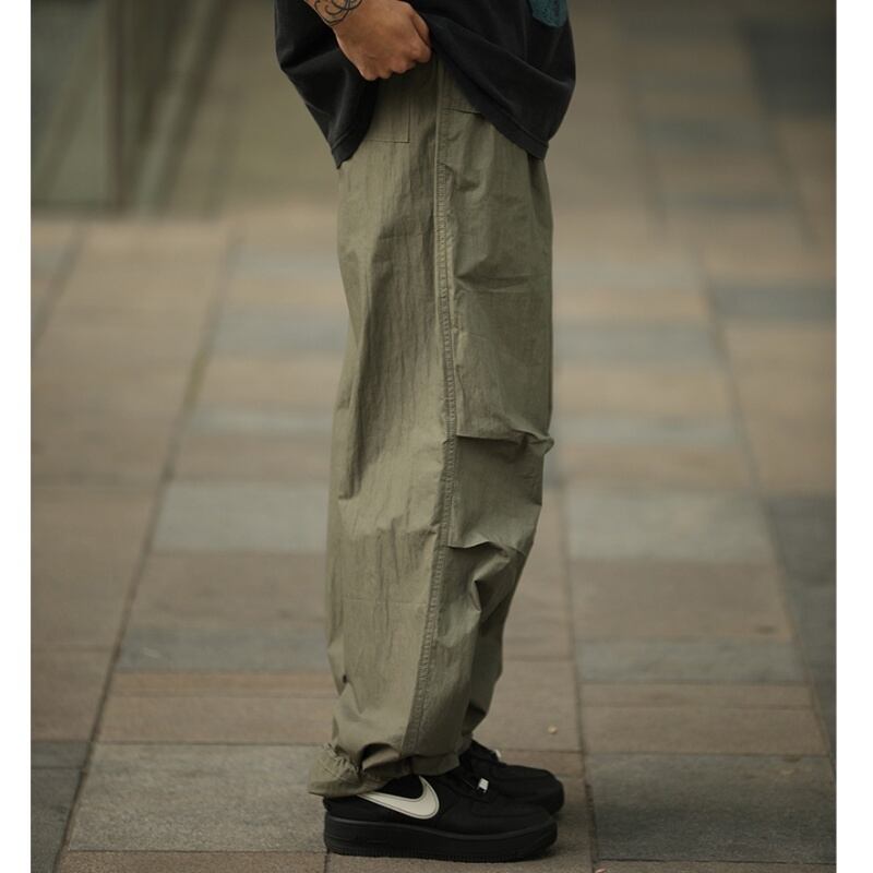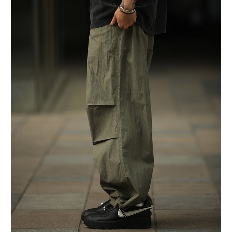 タックが作る自然な膨らみとボリューム感が特徴のパラシュートパンツです。