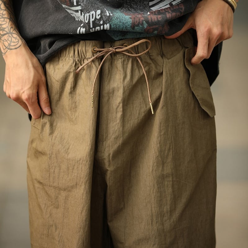 ゆとりのあるワイドレッグで通気性もよく、真夏のストリートやキャンプシーンにも最適です。