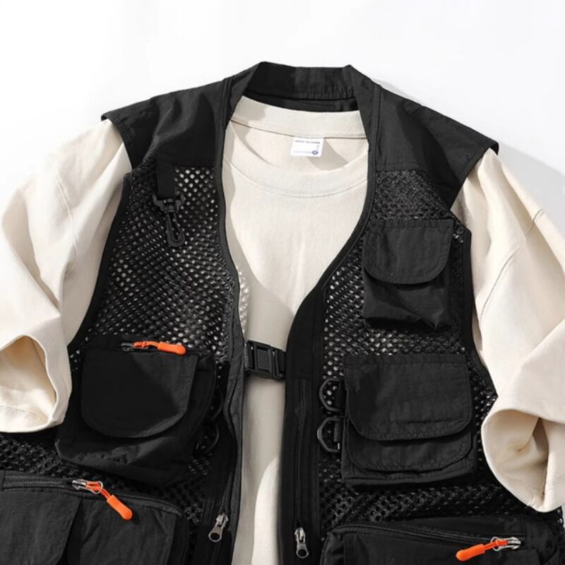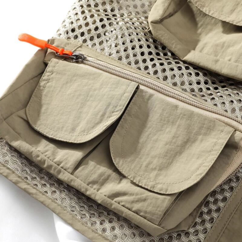 アウトドアに最適なマルチポケット付きメッシュベストです。