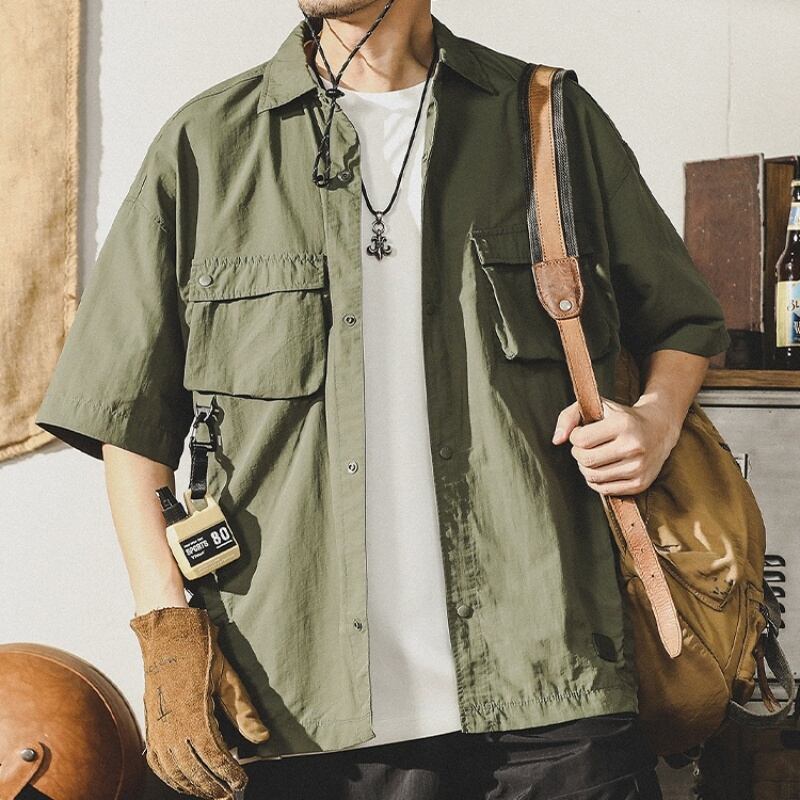 機能性とデザイン性を兼ね備えた、ゆったりサイズのワークシャツです。