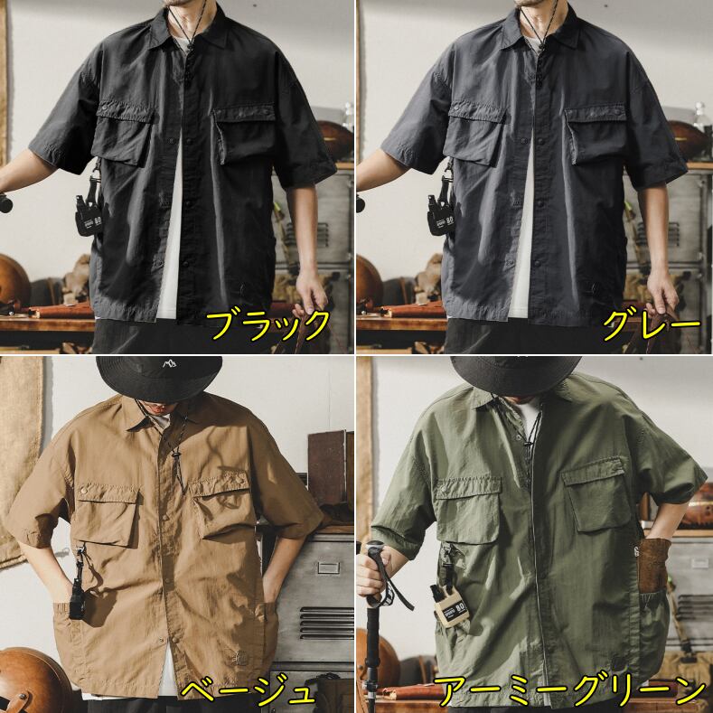 大きなマルチポケット付きシャツジャケット 5XLまで対応 A19048