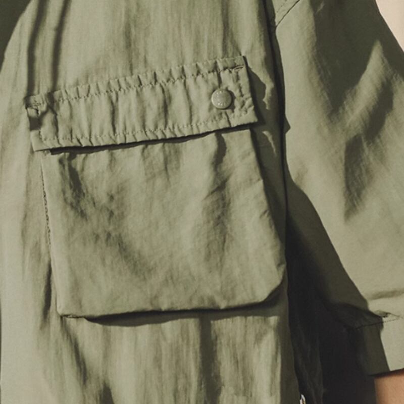 胸ポケットは見た目以上の収納力があり、サイドポケッは伸縮性があるので、体にフィットするデザインです。