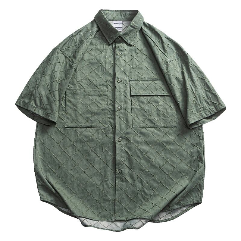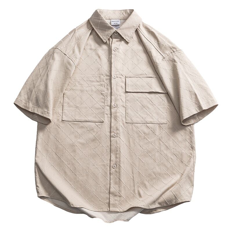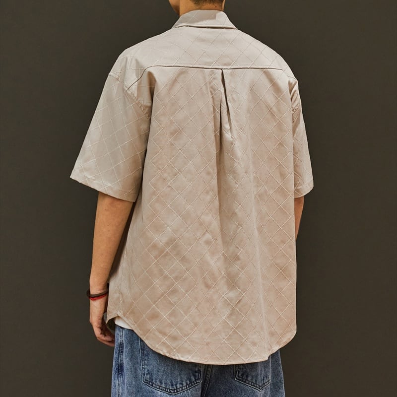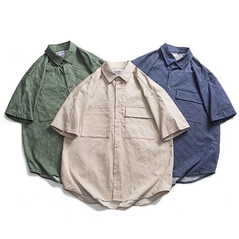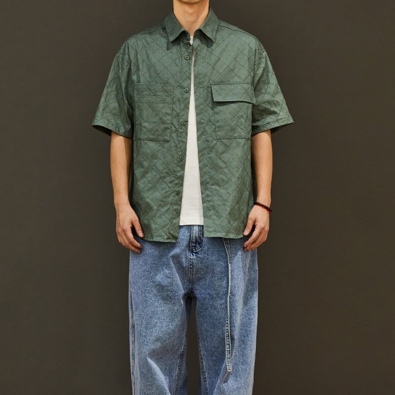 落ち着いたトーンのチェック柄と、ジャカード生地のボタンダウンシャツです。