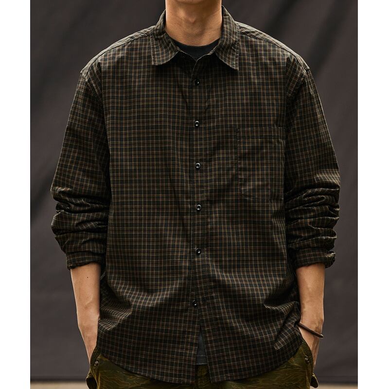 ヴィンテージ感のあるカラーと、スモールチェック柄がレトロな雰囲気を持つカジュアルなシャツです。