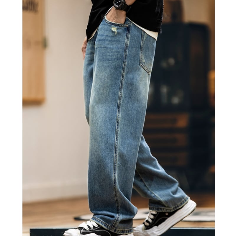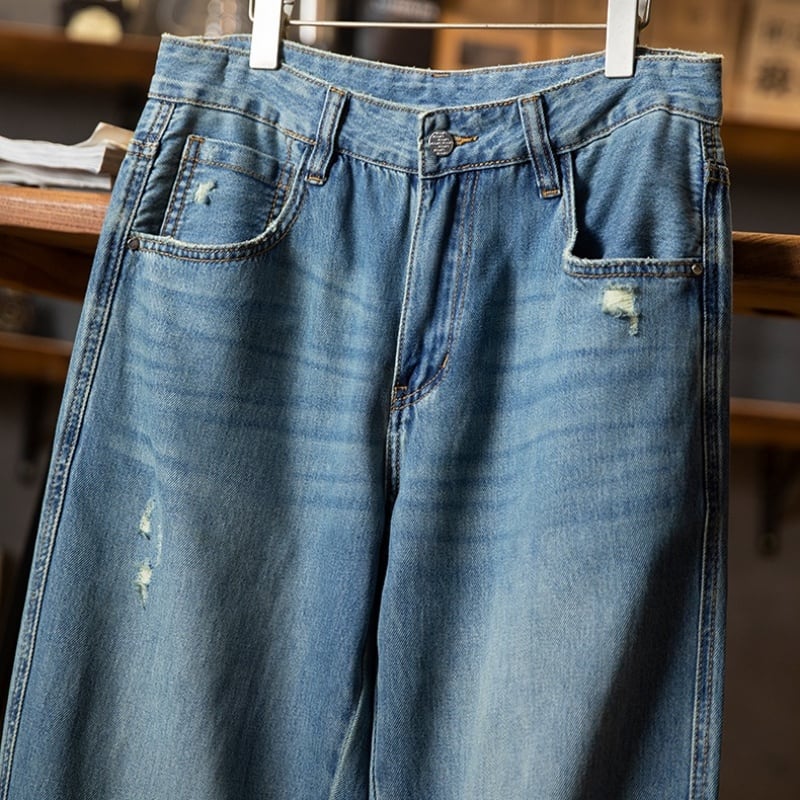 ヴィンテージライクなウォッシュ加工に、こなれ感漂うダメージディテールをプラス◎