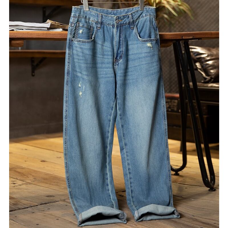 ダメージ加工ワイドレッグデニムパンツ A19012