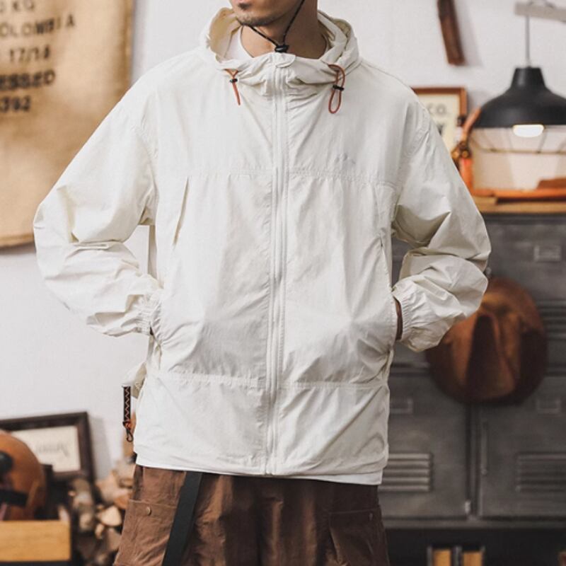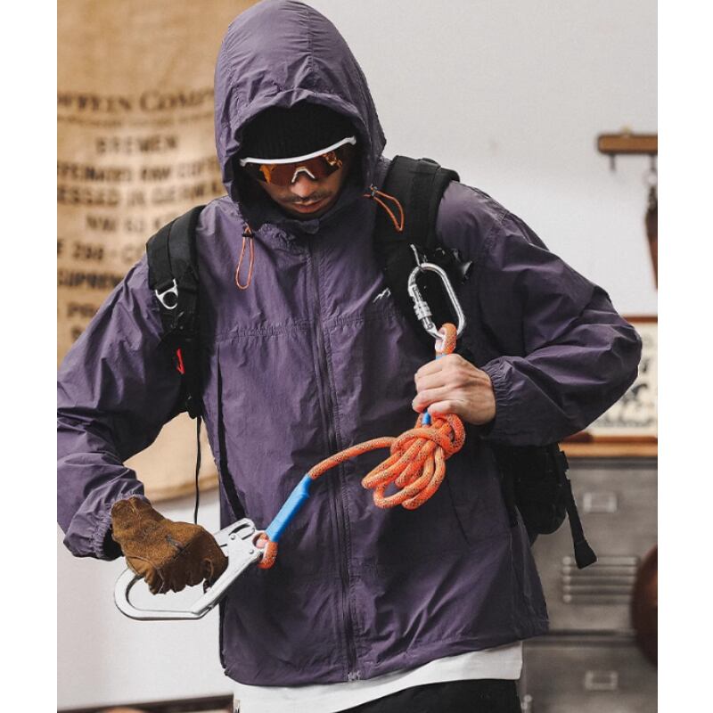 フードとフルジップアップで紫外線を防ぎつつ、背面は通気性に優れた隠れメッシュで暑さが籠りません。