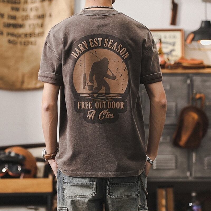 バックプリントが目を惹く、オーバーサイズのラウンドネックTシャツです。