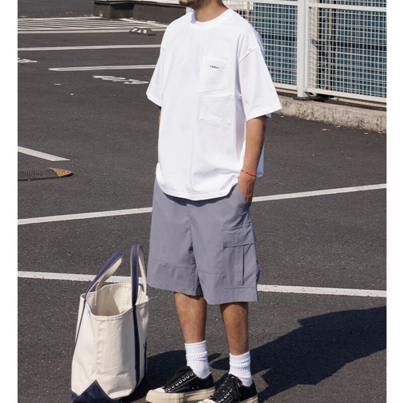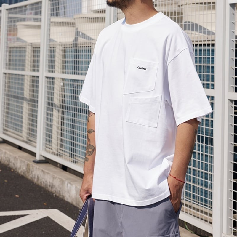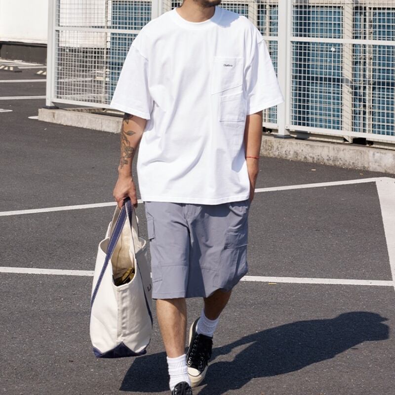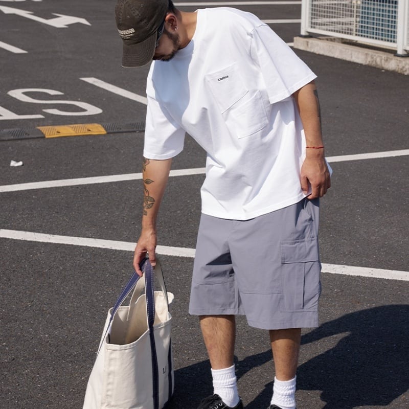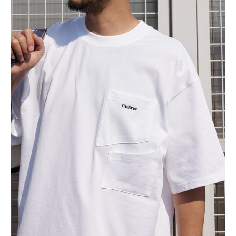 着回し抜群のマルチポケット付きラウンドネック半袖Tシャツ。