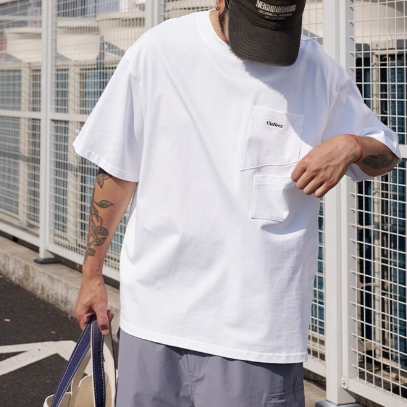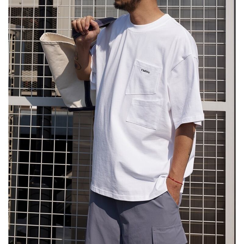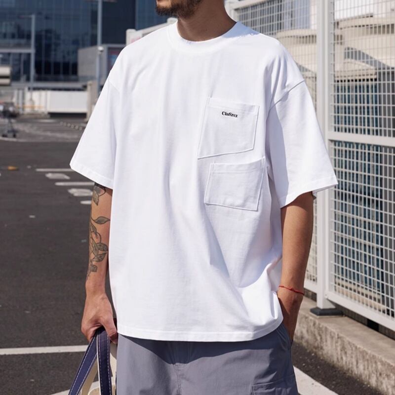 シンプルながらも胸元のポケットがアクセントとなり、カジュアルスタイルをワンランクアップさせます。