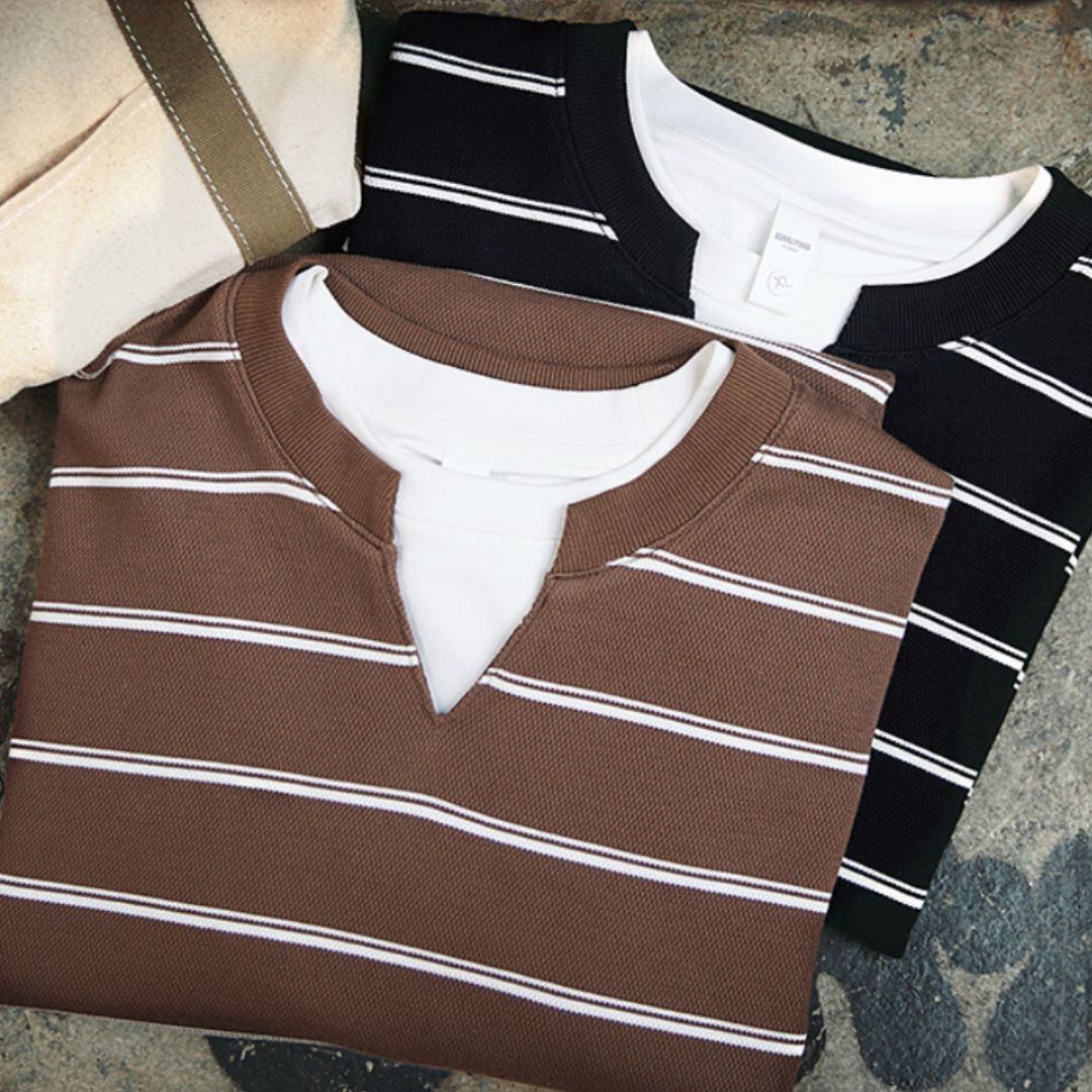 ラウンドネックのフェイクツーピースで、一枚でコーデが決まります。