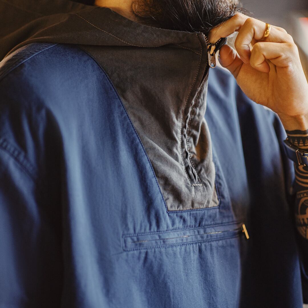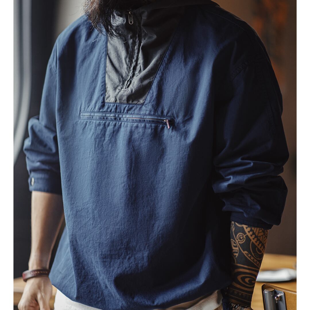 ハーフジップアップのデザインが特徴的なスタンドカラーのプルオーバーです。