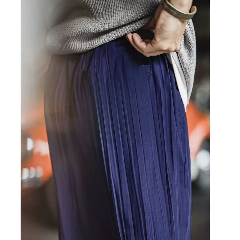 ワイドなシルエットながらも、裾に向かって緩やかにテーパードがかかっているため、すっきりとした印象を与えます。