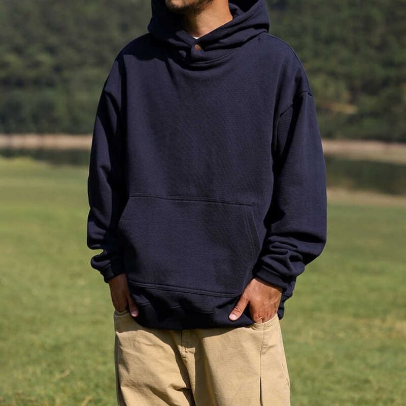 ゆったりとした着心地が魅力のフード付きプルオーバーパーカーです。