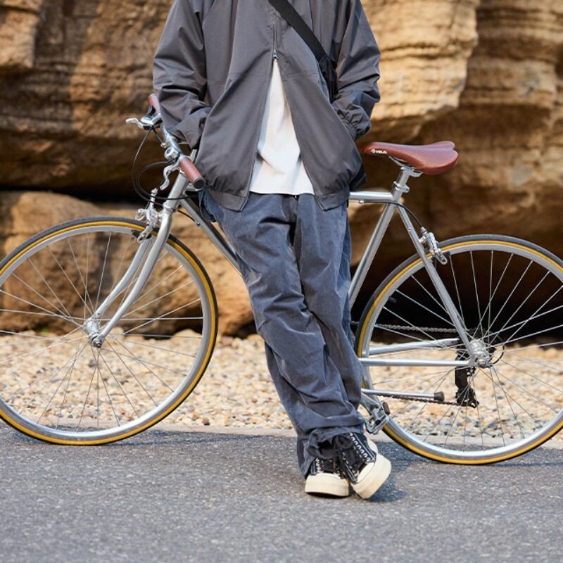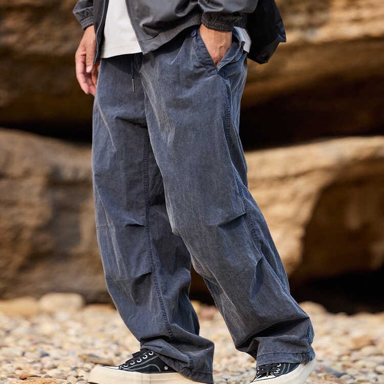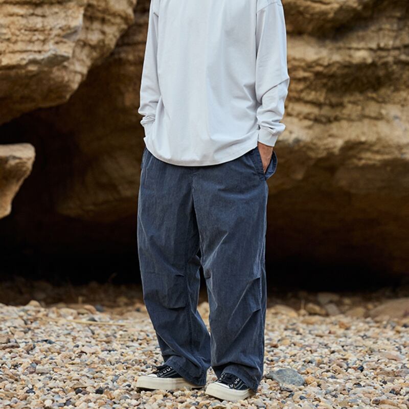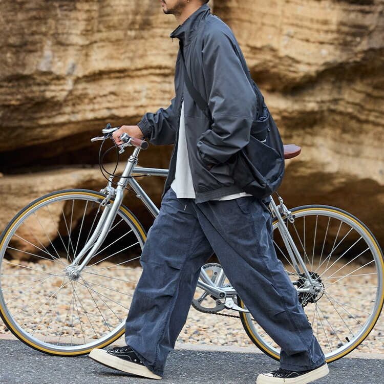 ウエストゴムで着脱しやすく、裾のドローストリングを絞ってスポーティなシルエットにも!