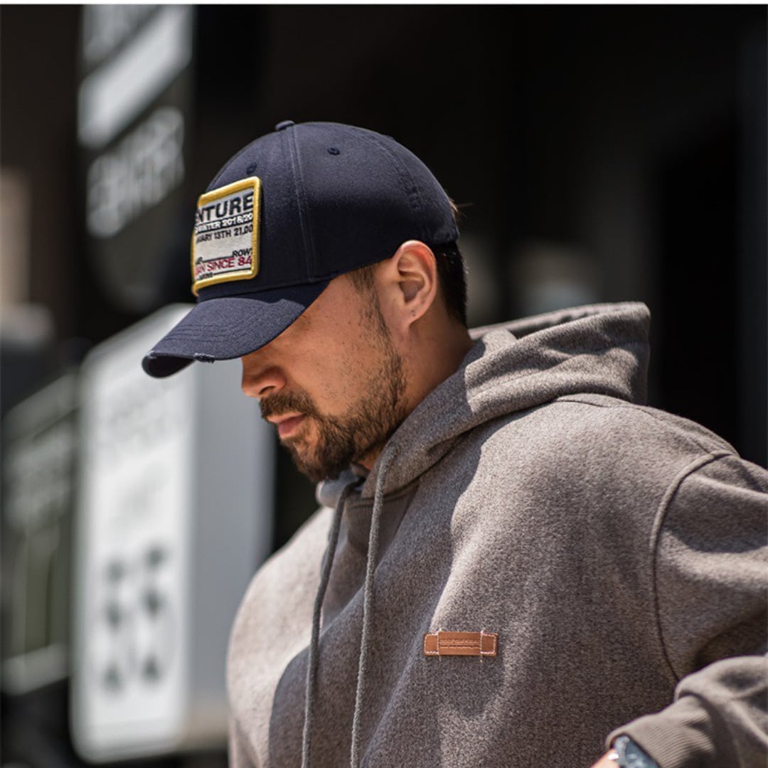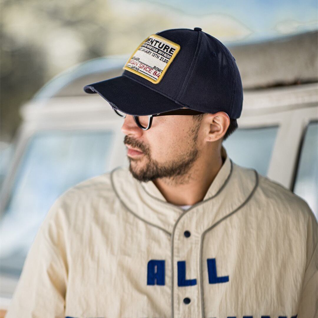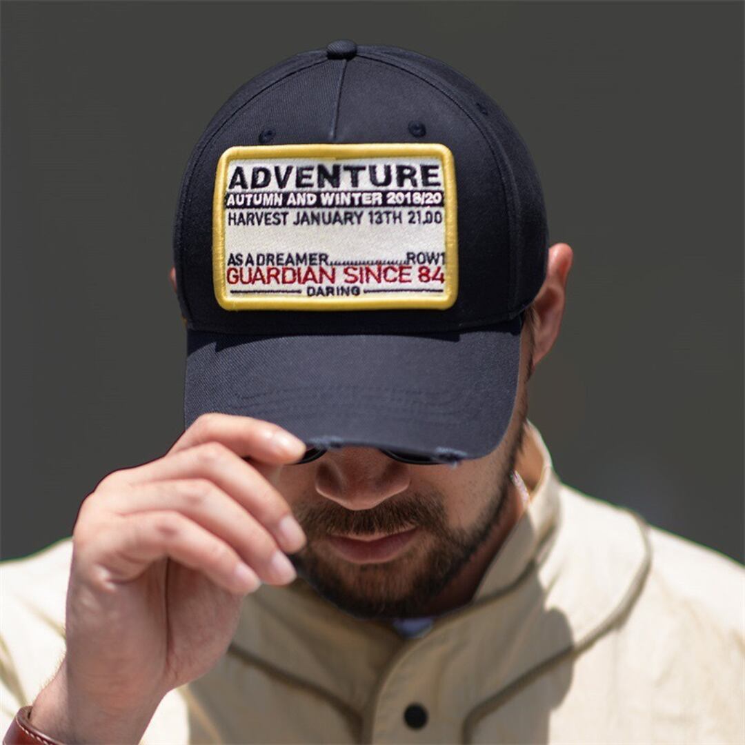 ダメージ加工が施された、ヴィンテージ感のあるベースボールキャップ。フロントには「ADVENTURE」の文字と、レトロなデザインの刺繍パッチがアクセントになっています。カジュアルなスタイルにこなれ感をプラスしたい方におすすめです。普段使いはもちろん、アウトドアシーンにも活躍します。
