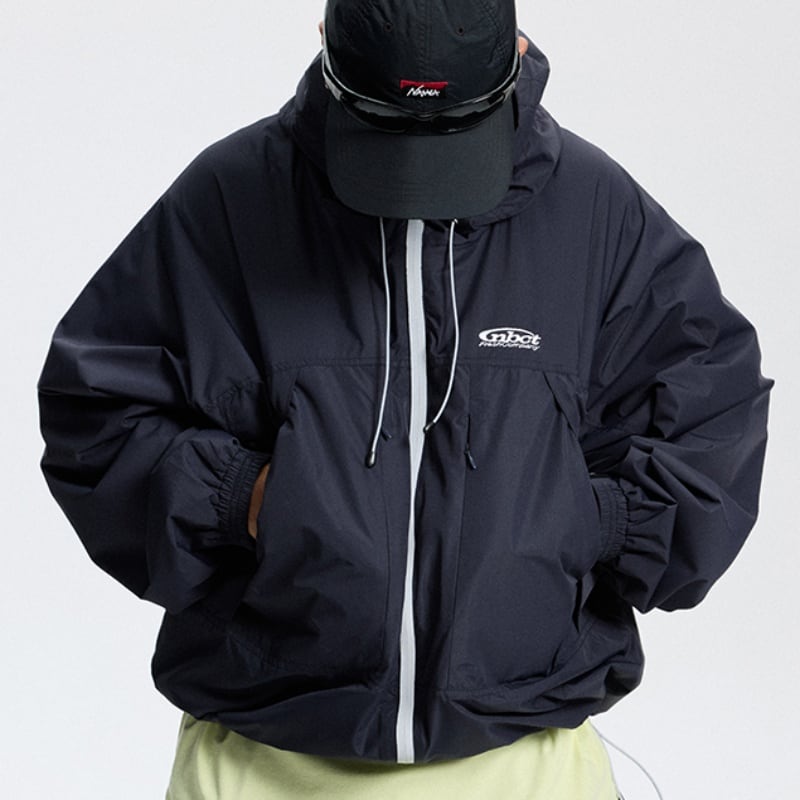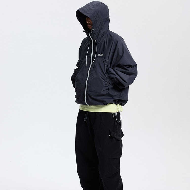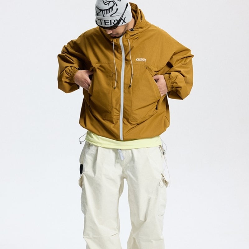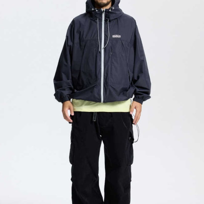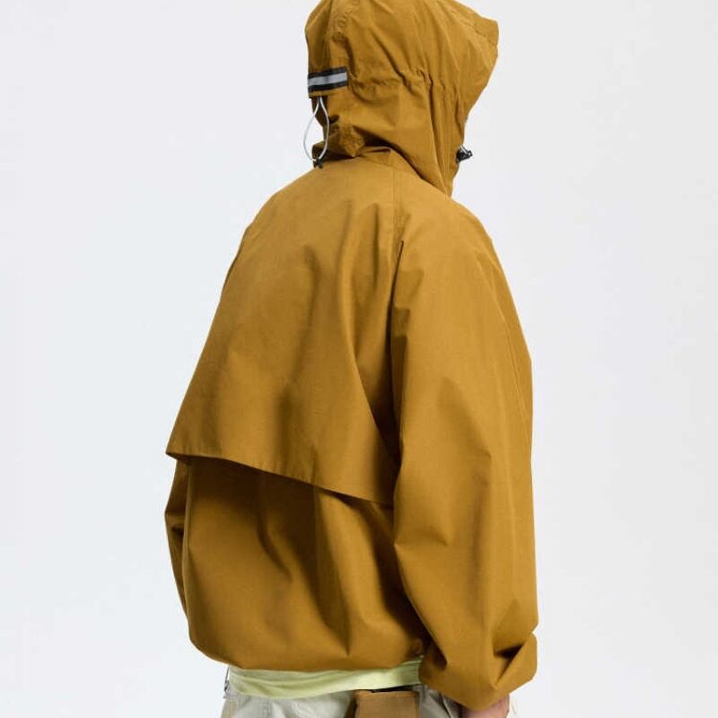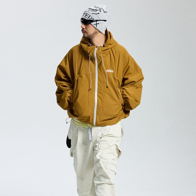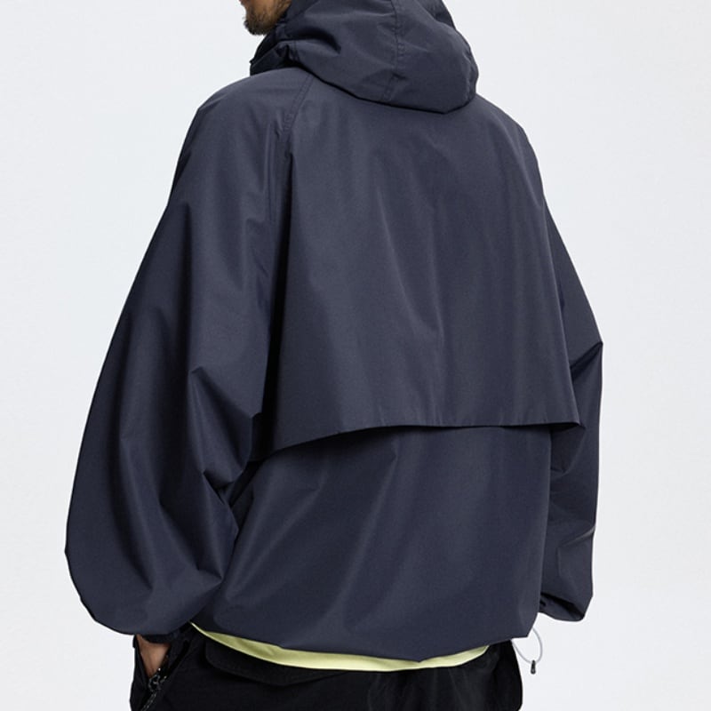 フードは雨や風の侵入を防ぎ、オーバーサイズのシルエットは動きやすさを確保します。