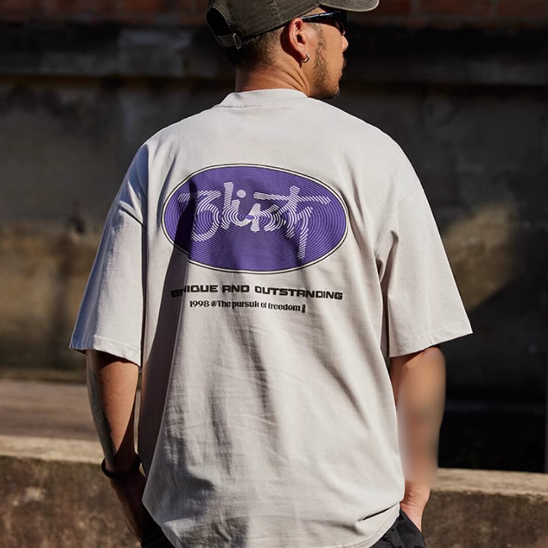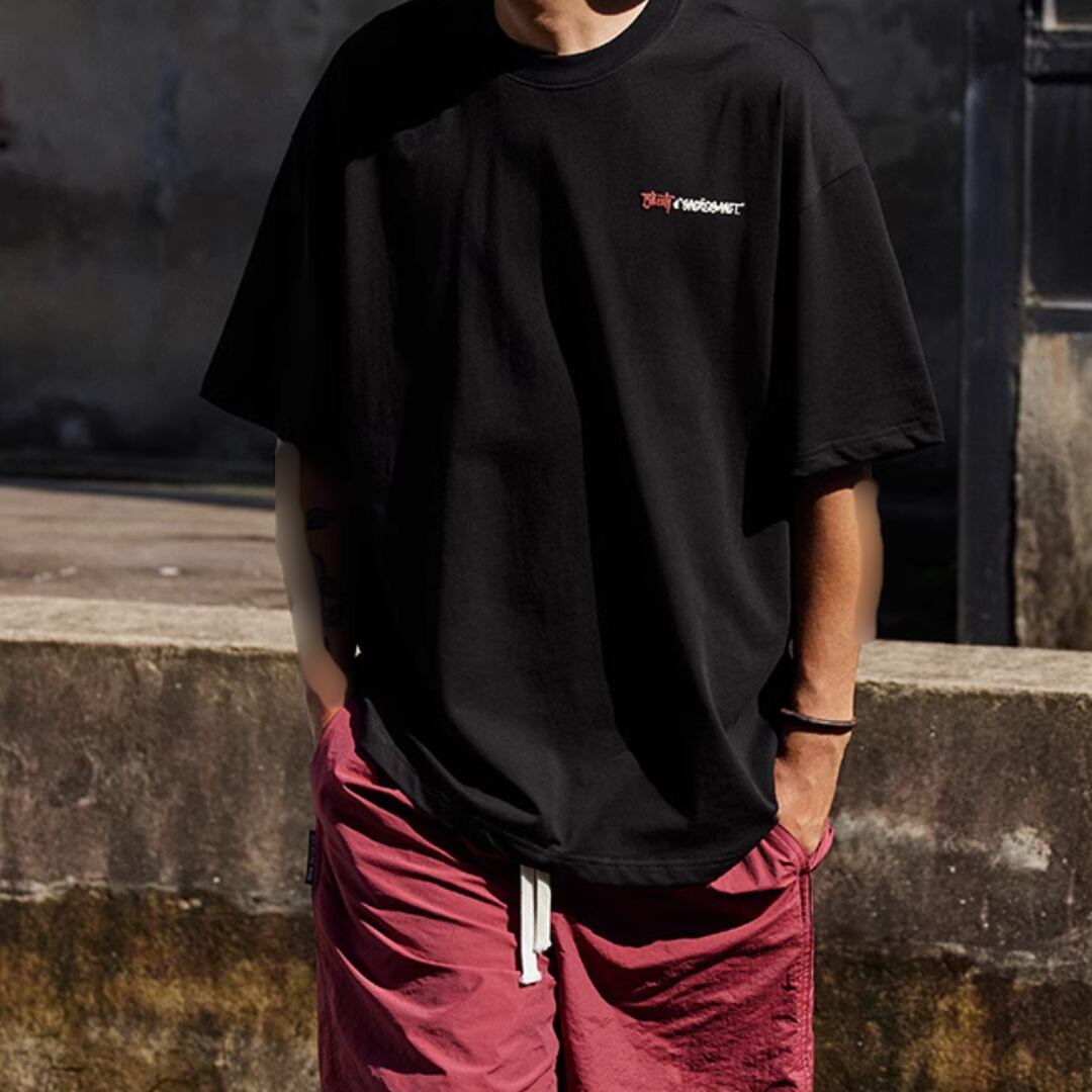 ゆったりとしたオーバーサイズシルエットが特徴の半袖Tシャツ。