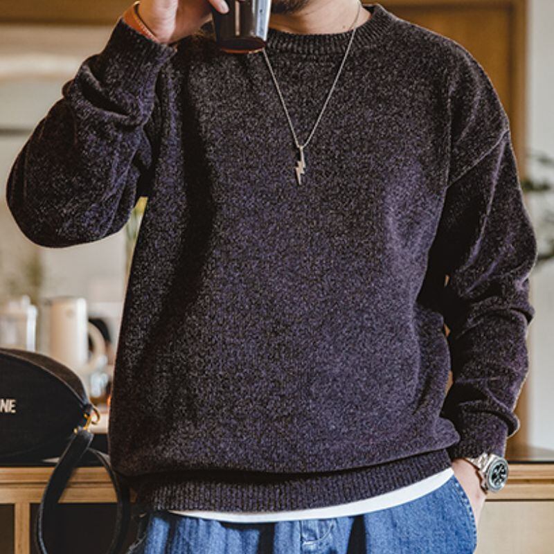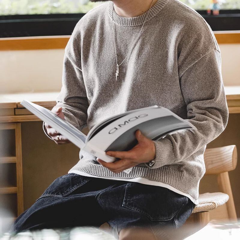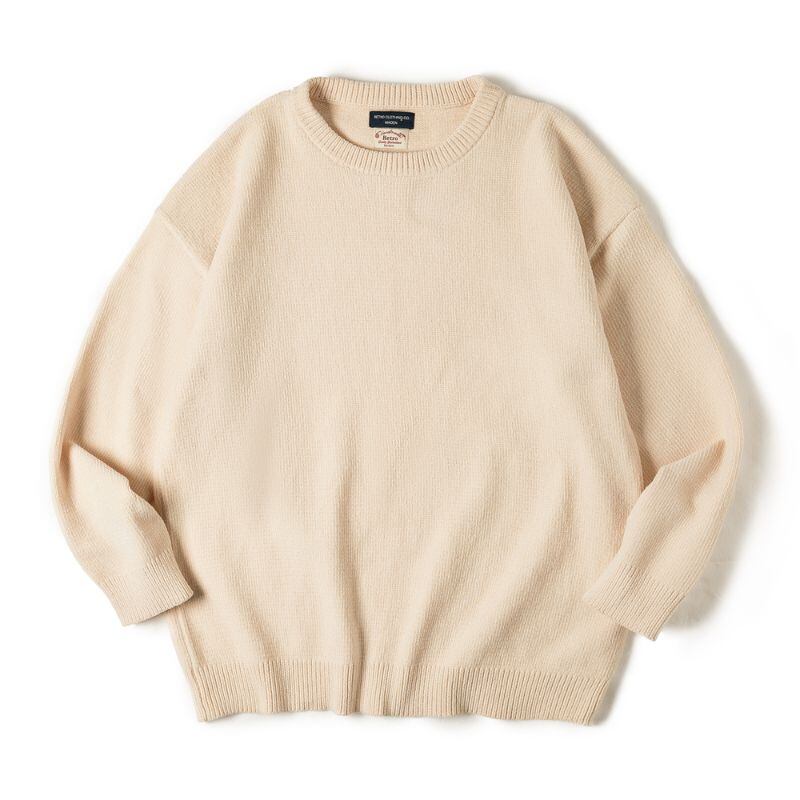 レトロな雰囲気漂うオーバーサイズのニットプルオーバー。