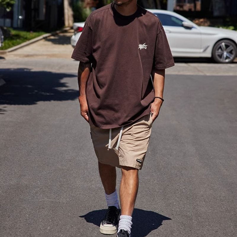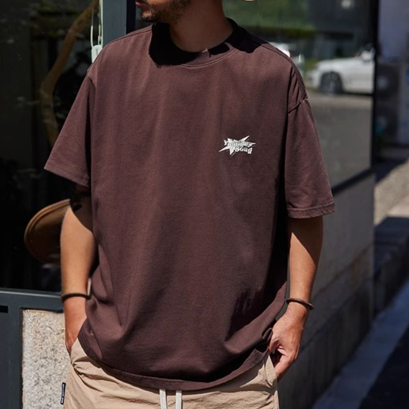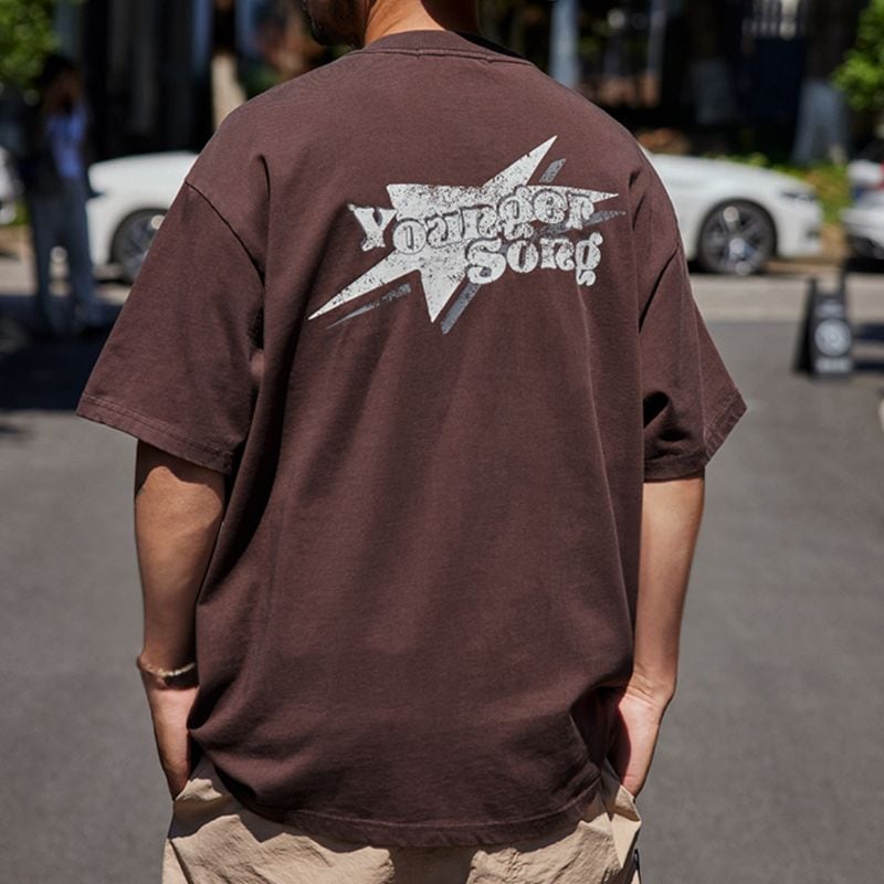 バックプリントが目を惹く、ビッグシルエットの半袖クルーネックTシャツ。