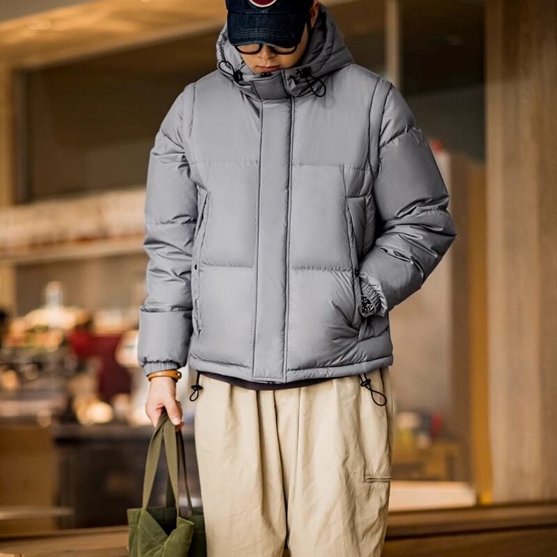 機能性とデザイン性を両立した、フード付き2wayダウンジャケットです。