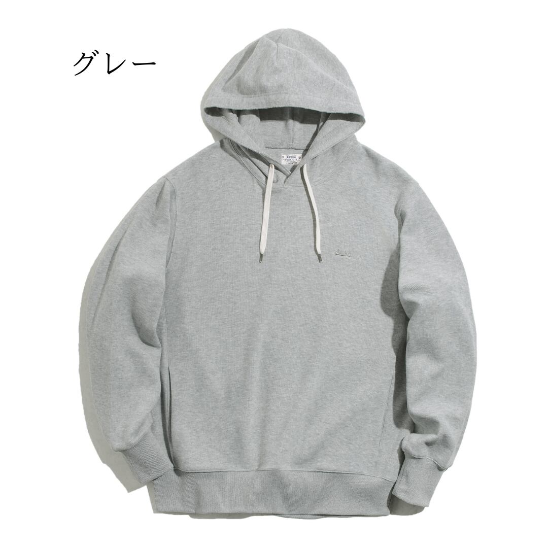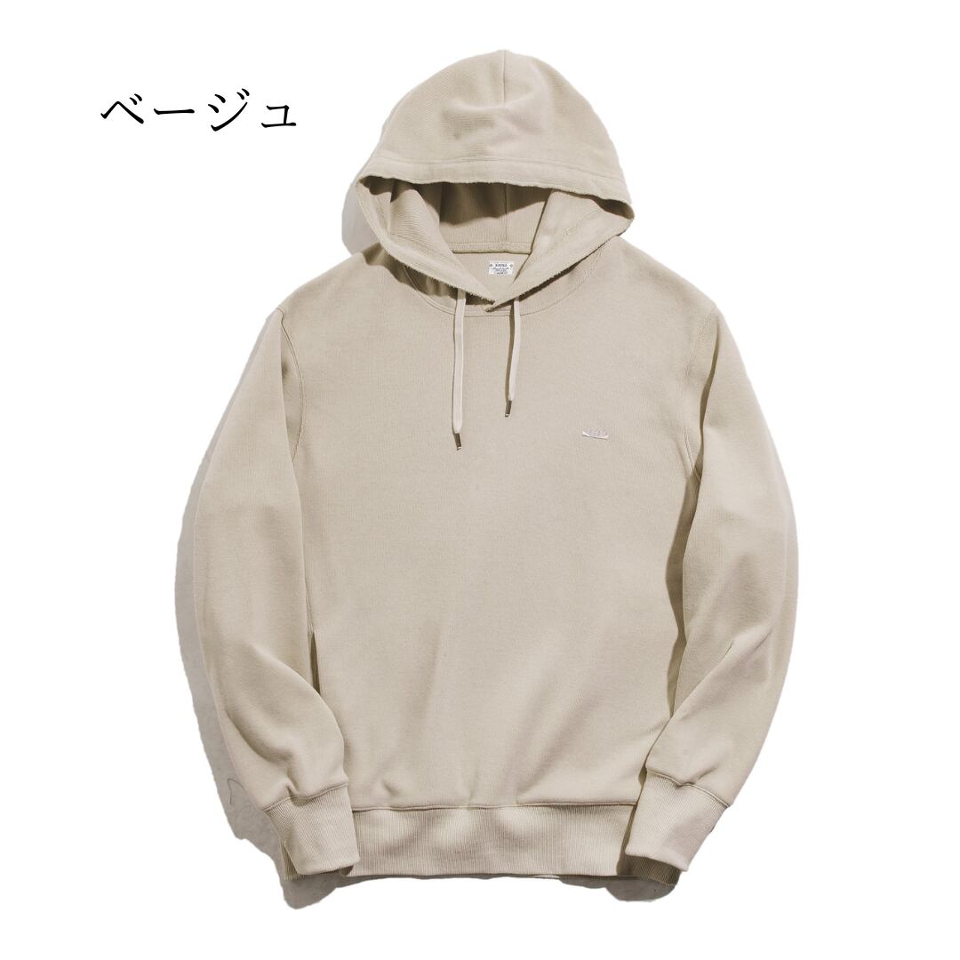 3色展開のフーデッドスウェットプルオーバーパーカー。