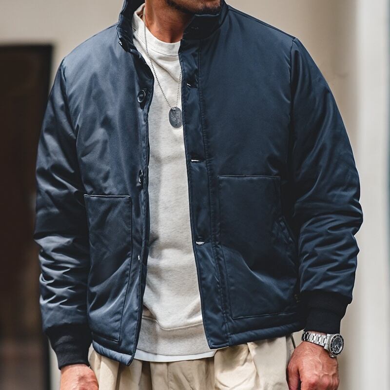 機能性とデザイン性を兼ね備えた中綿ボンバージャケットです。