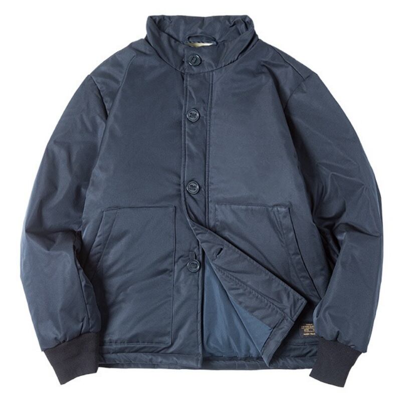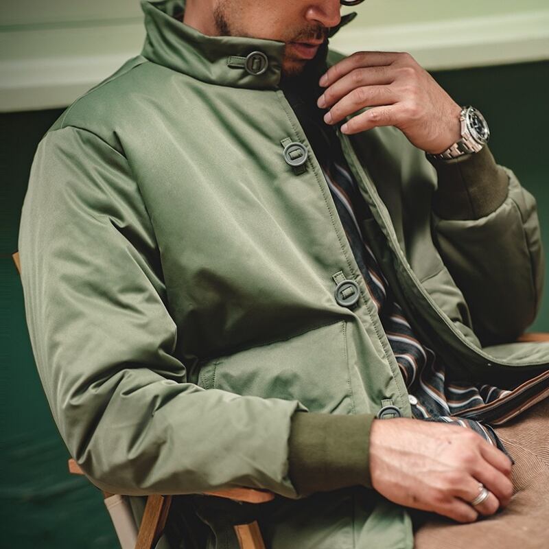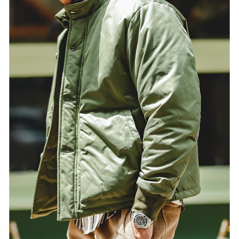 スタンドカラーが首元を暖かく包み込み、防寒性にも優れています。