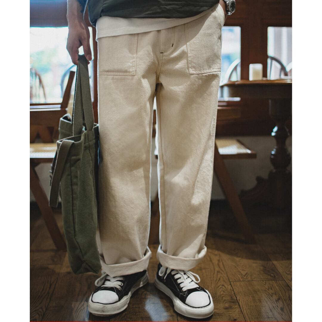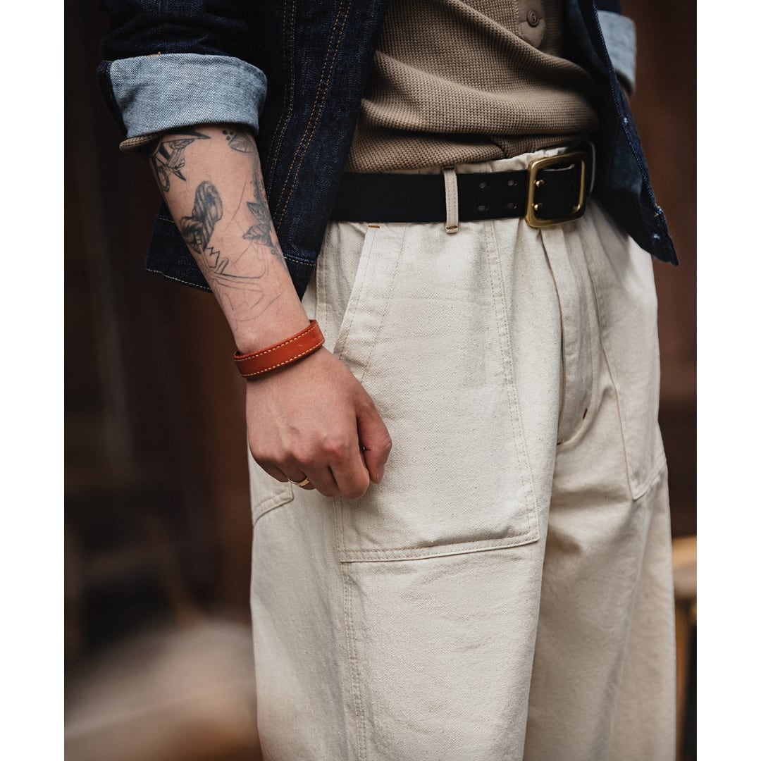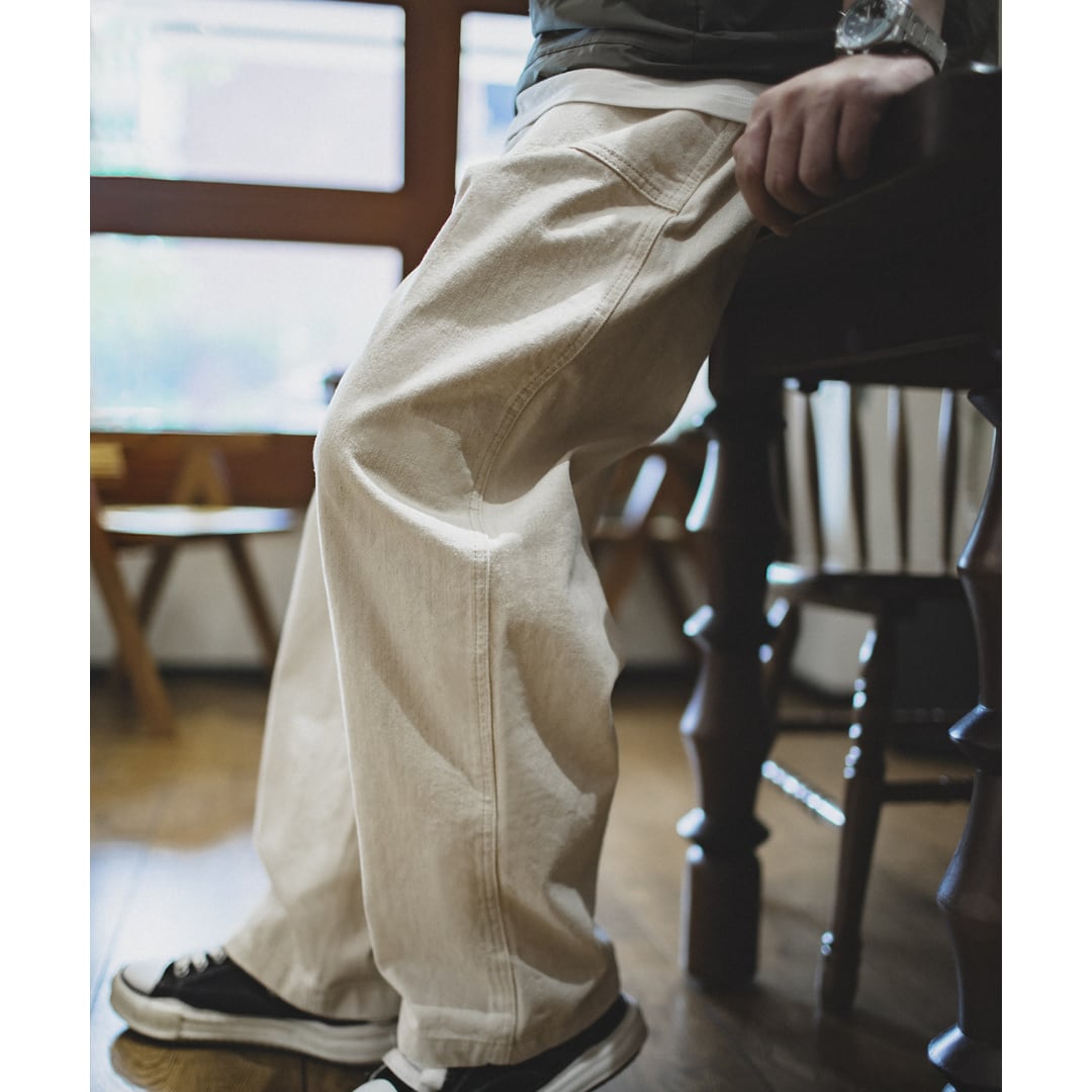 着回し力抜群のワークテイストワイドパンツ。程よくゆとりのあるシルエットで、快適な履き心地を実現しました。カジュアルなTシャツとスニーカーでラフに着こなしたり、シャツと合わせてきれいめカジュアルスタイルにも着回せます。