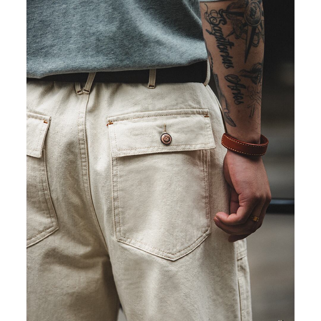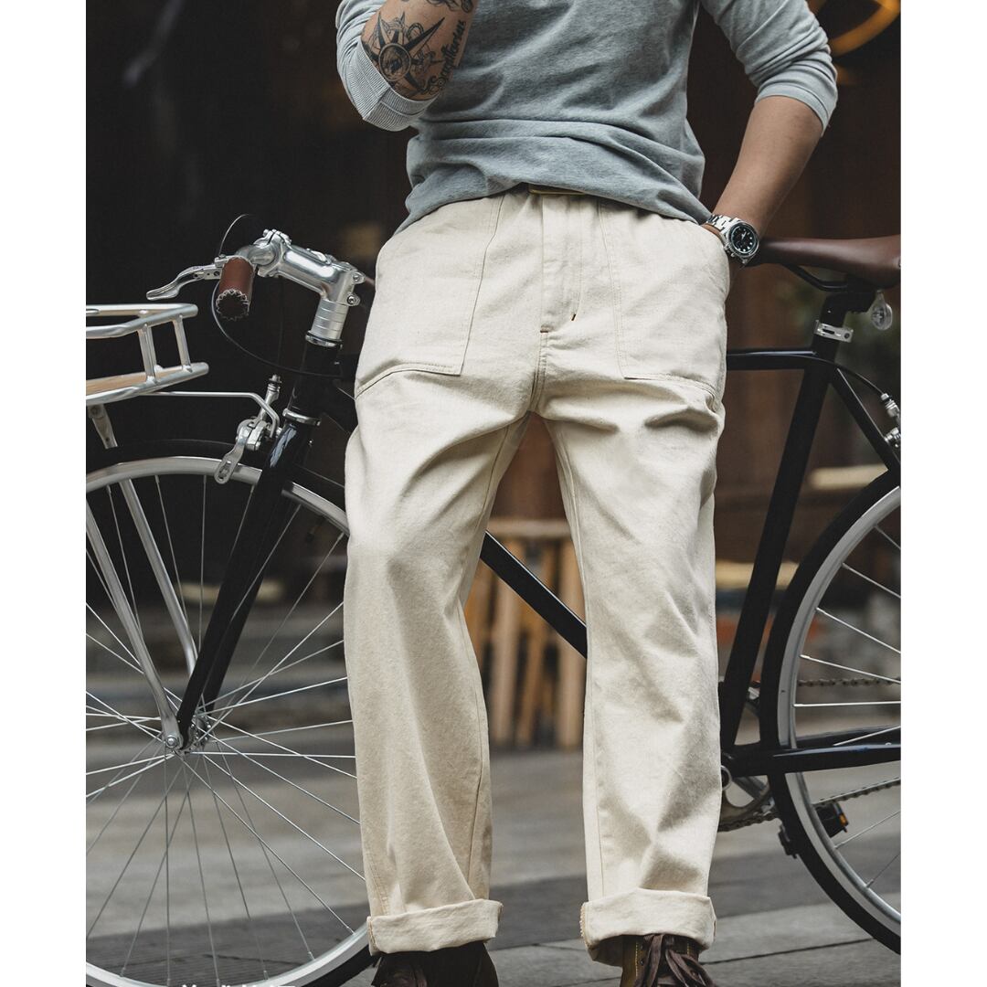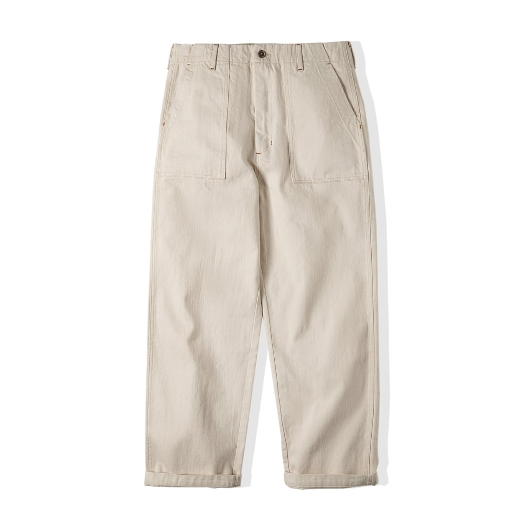 着回し力抜群のワークテイストワイドパンツ。程よくゆとりのあるシルエットで、快適な履き心地を実現しました。カジュアルなTシャツとスニーカーでラフに着こなしたり、シャツと合わせてきれいめカジュアルスタイルにも着回せます。