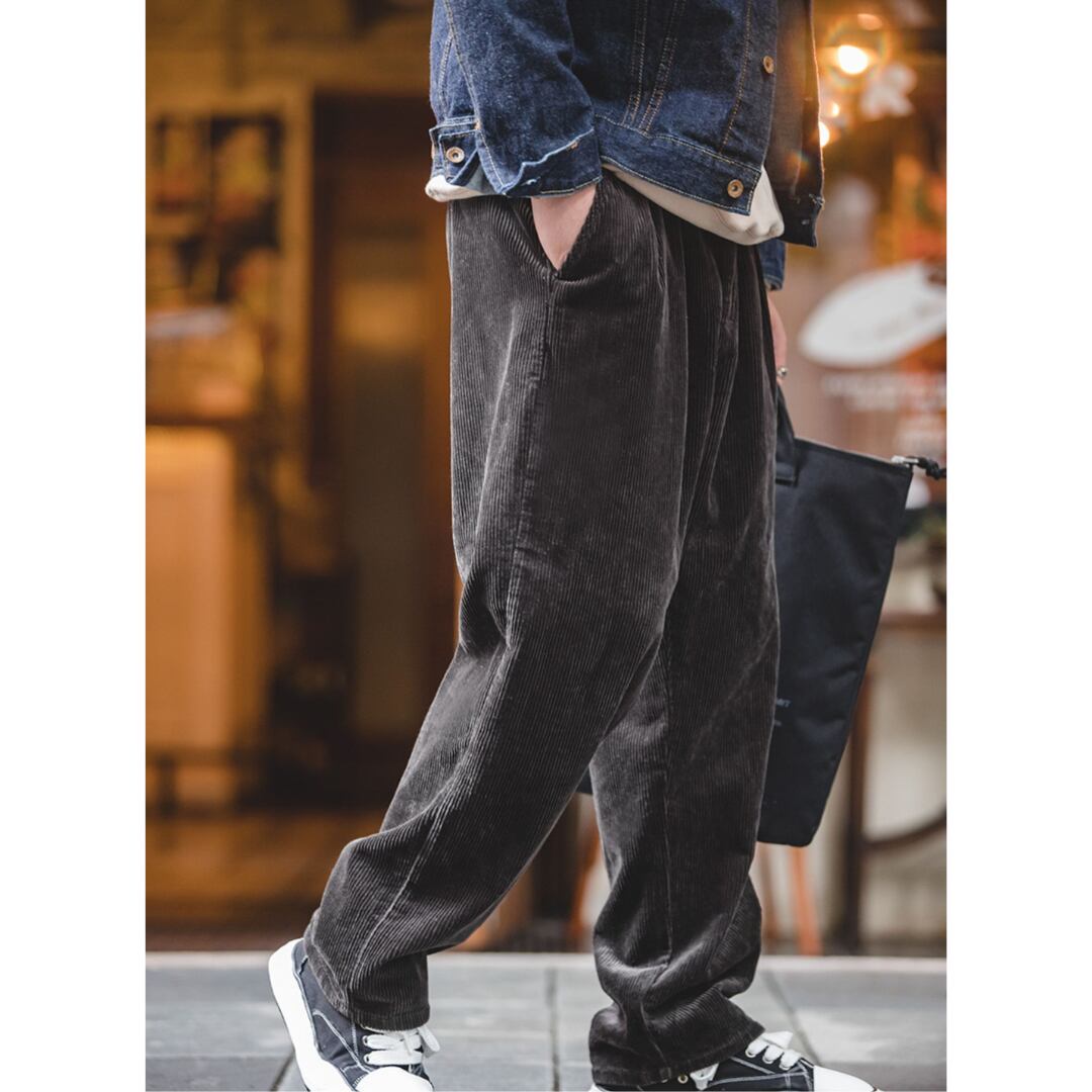 レトロな雰囲気漂うコーデュロイパンツ。