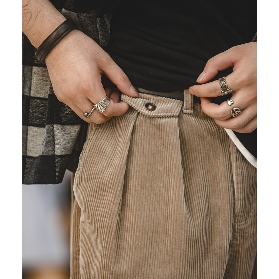 着回し力抜群のコーデュロイワイドパンツは2色展開で、お好みのカラーをお選びいただけます。