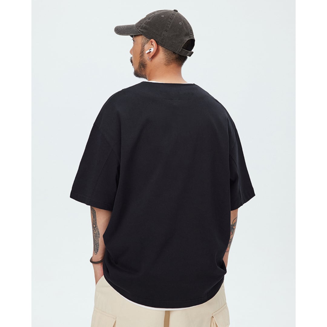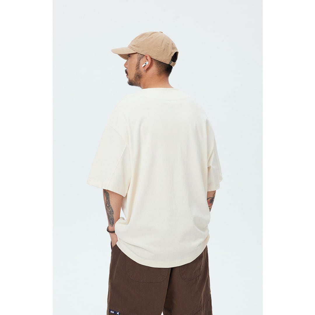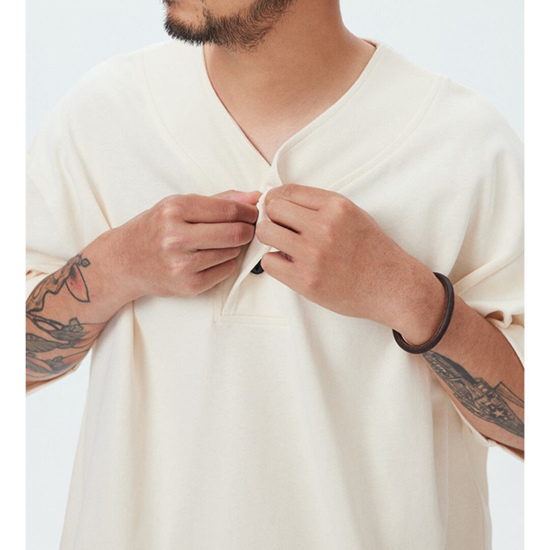 バンドカラーが特徴的なオーバーサイズ半袖Tシャツ。