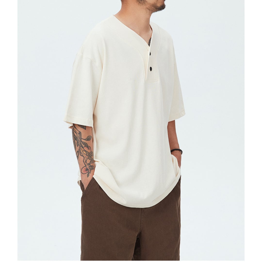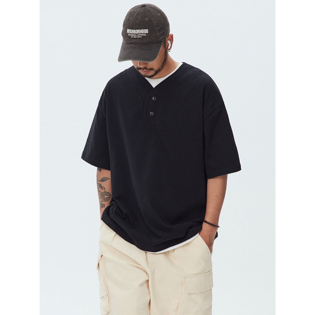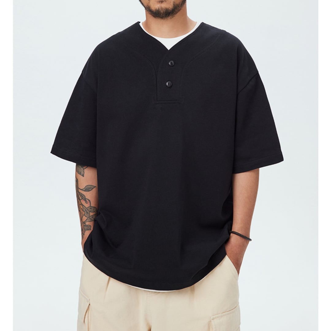 オーバーサイズヘンリーネック半袖シャツ A18068