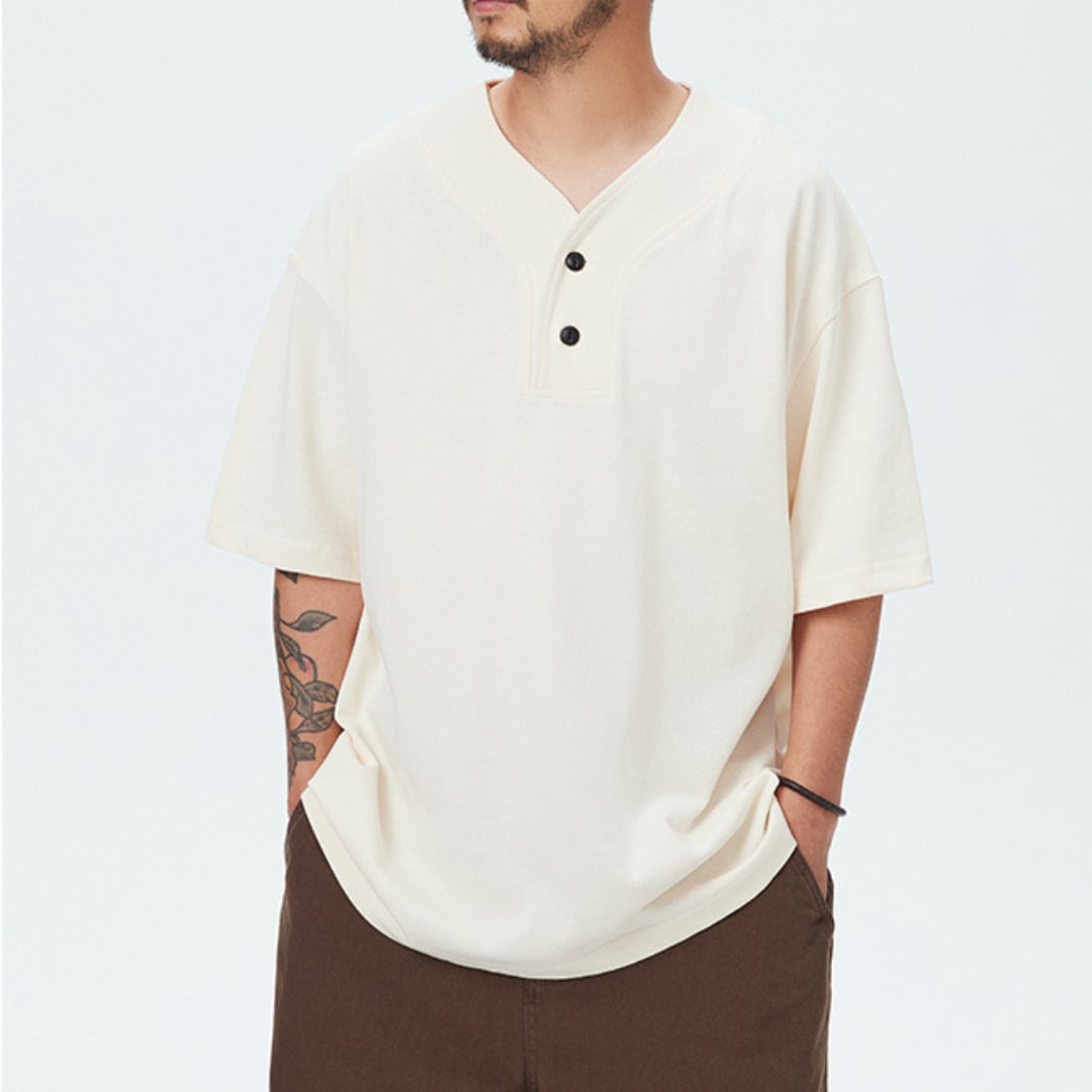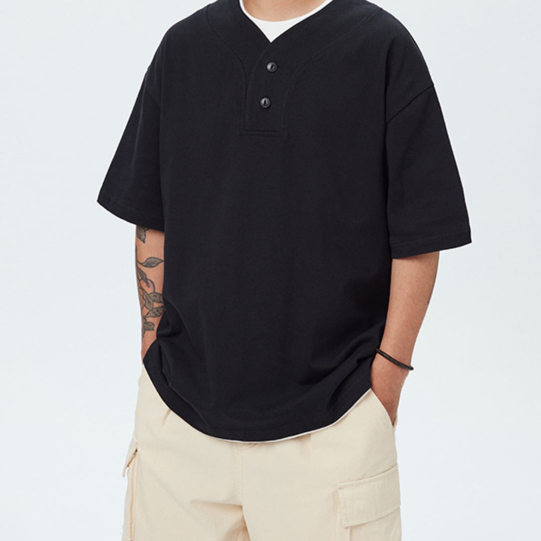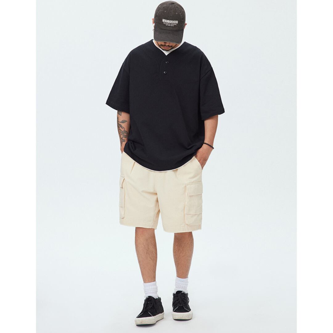 オーバーサイズヘンリーネック半袖シャツ A18068