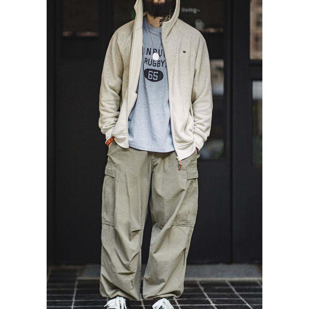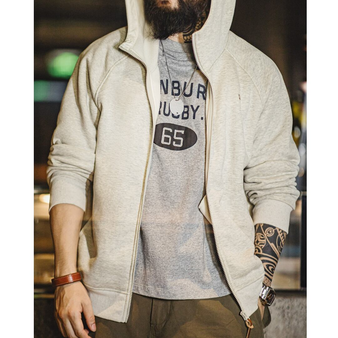 ダブルジップで着こなしの幅が広がるフード付きジップアップパーカー。