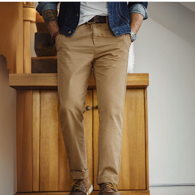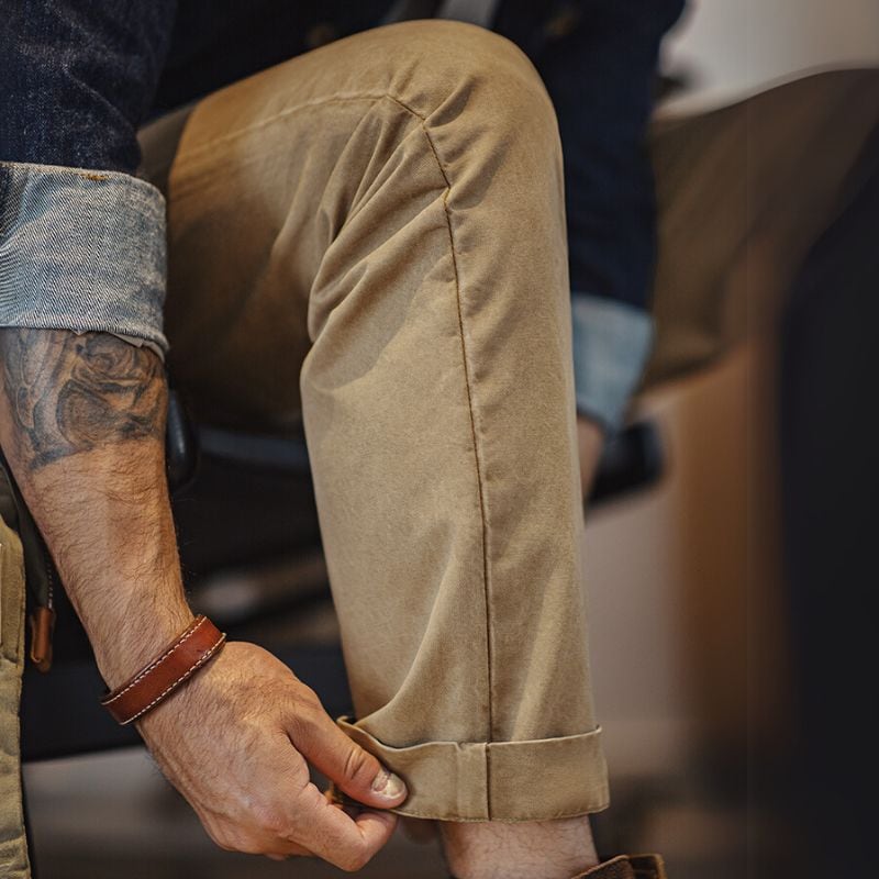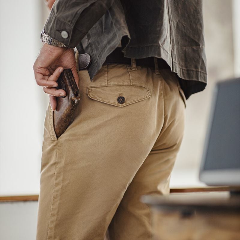 バックポケット付きのノータックチノパンツは、あらゆるシーンで活躍する万能アイテムです。すっきりとしたシルエットで、カジュアルながらも上品な印象を与えます。動きやすさを重視したノータックデザインで、快適な履き心地を実現しています。ビジネスシーンから休日のお出かけまで、幅広いスタイルにマッチします。