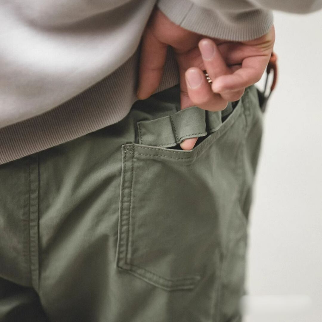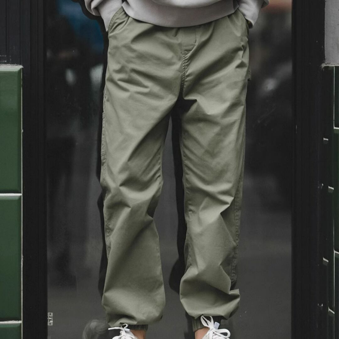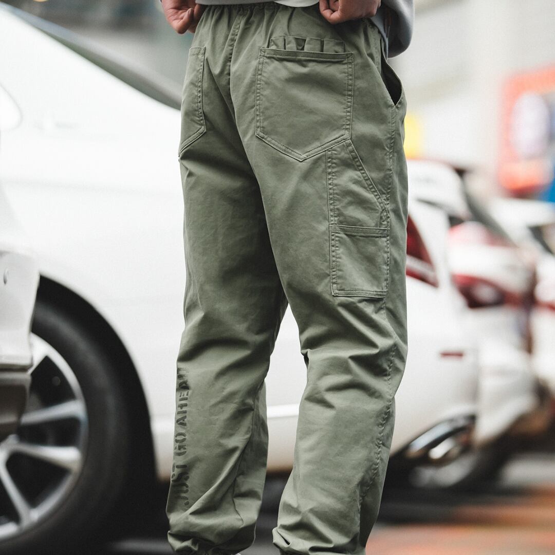 着心地抜群のウエストゴムジョガーパンツ。サイドポケット付きで機能性も兼ね備えています。テーパードシルエットが、カジュアルながらも洗練された印象を与えます。シンプルながらもデザイン性の高い一着は、様々なスタイルに合わせやすく、アウトドアやデイリーユースに最適です。