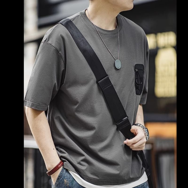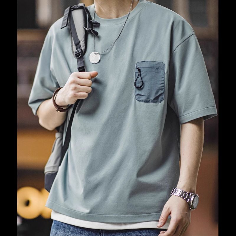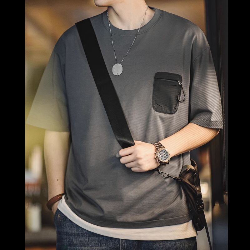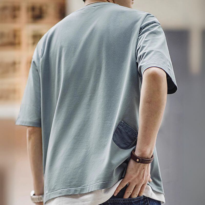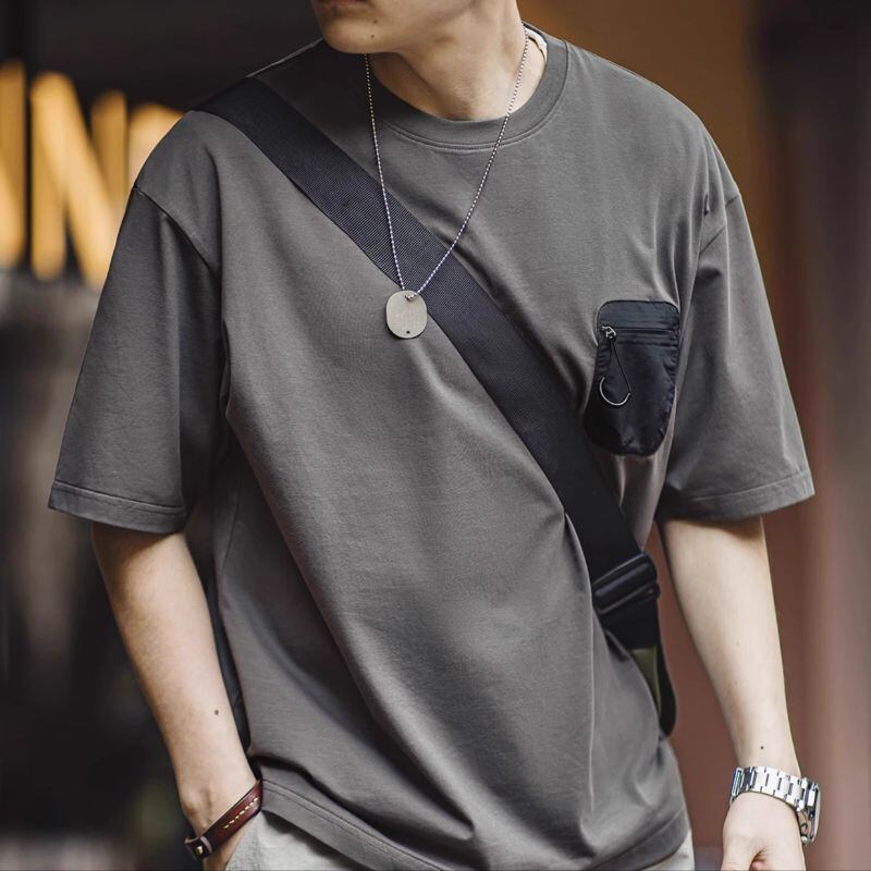 オーバーサイズのシルエットがリラックス感を演出する半袖クルーネック。Tシャツさりげなく配置されたパッチポケットが、シンプルなデザインにアクセントを加えています。普段使いはもちろん、休日のカジュアルなスタイルやアウトドアにも最適です。
