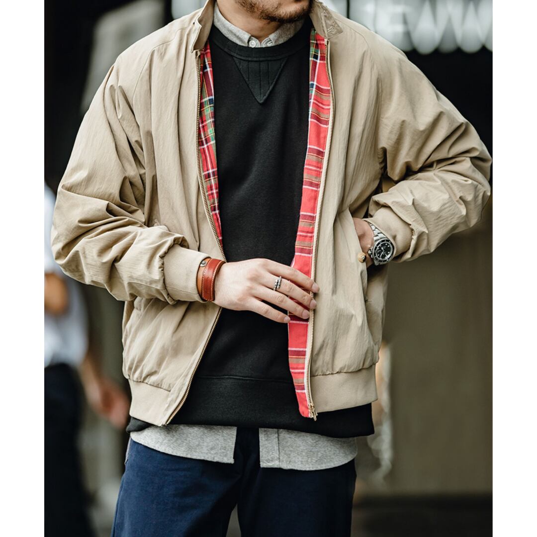 チェック裏地付きフルジップハリントンブルゾンA18159