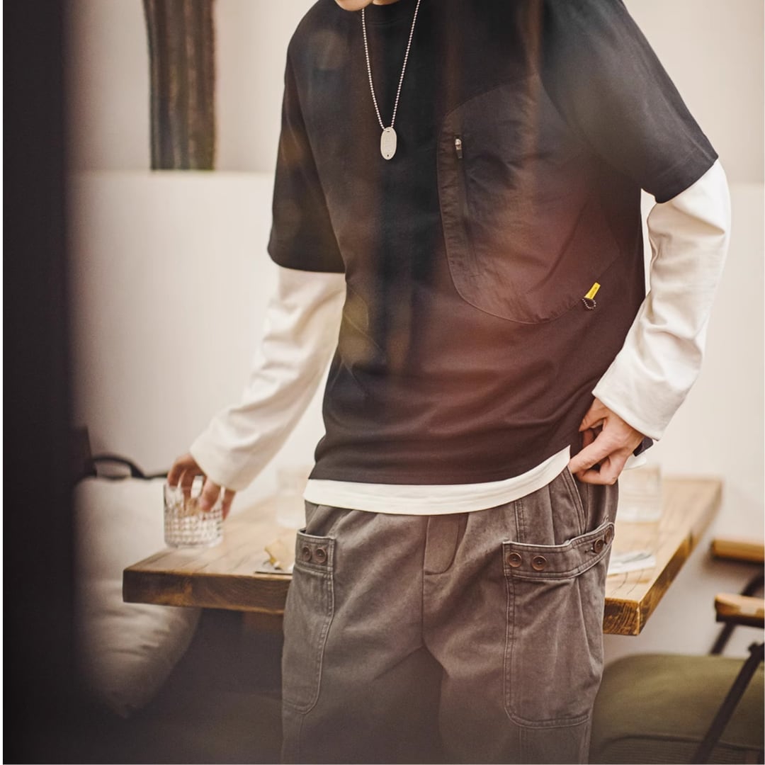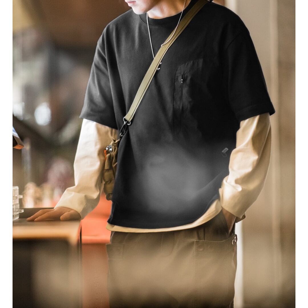 さりげなくデザインされたポケットがアクセントとなり、普段着からカジュアルなシーンまで幅広く活躍します。