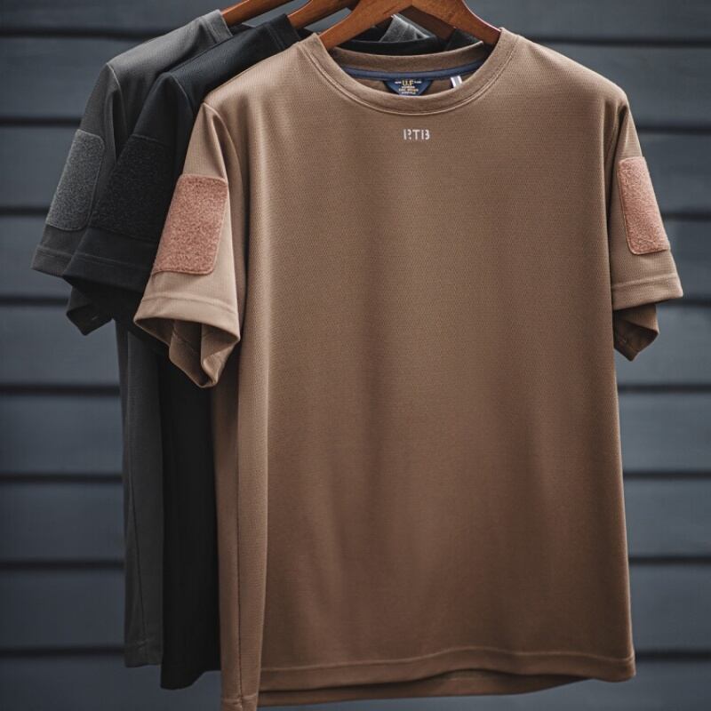 通気性の良いクルーネック半袖Tシャツです。