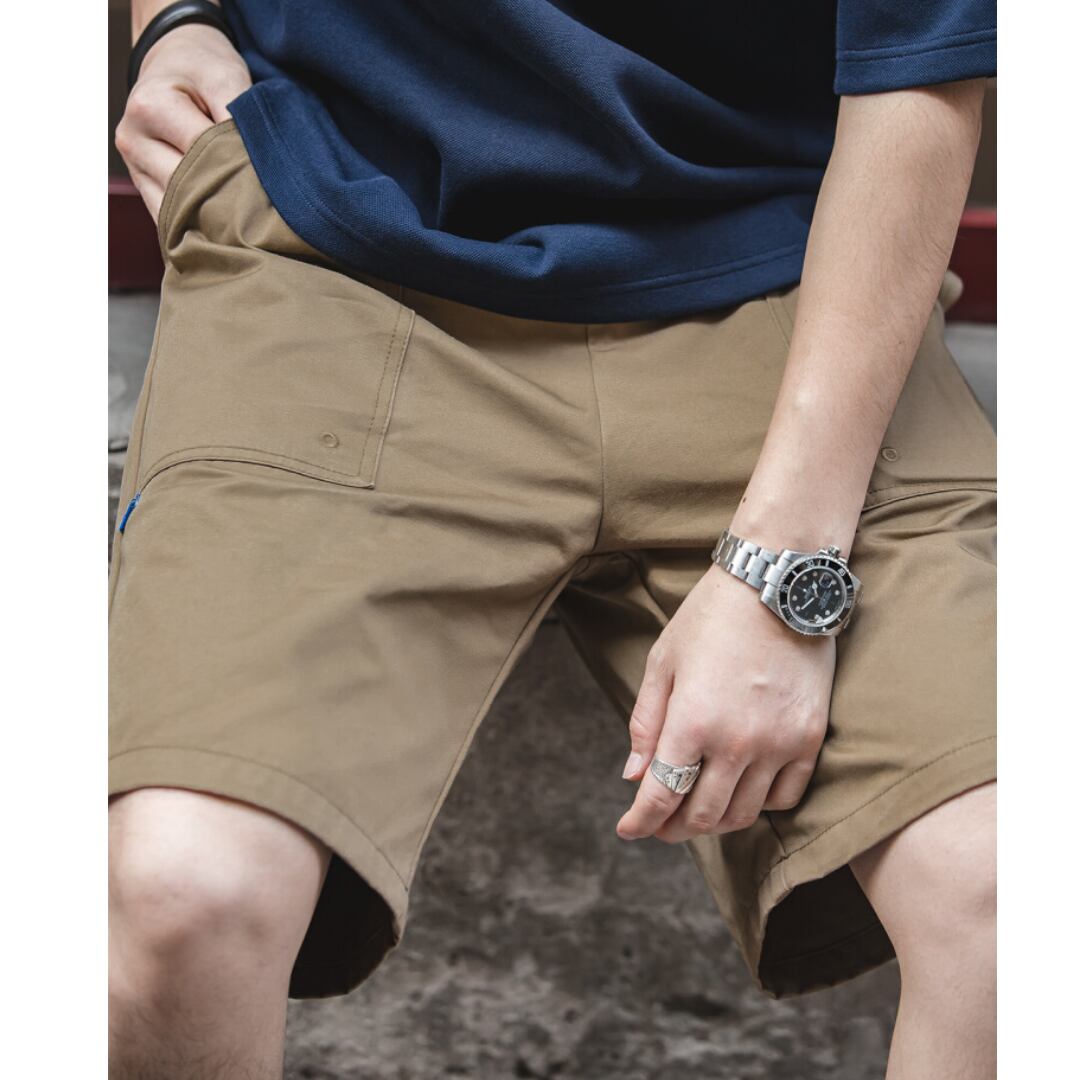 膝上丈の綿素材カーゴポケットショートパンツは、カジュアルなスタイルに最適なアイテムです。機能的なカーゴポケットは、スマートフォンや財布などの必需品を収納するのに便利です。普段使いはもちろん、アウトドアやレジャーシーンにも活躍します。動きやすいシルエットで、快適な着心地を一日中お楽しみいただけます。