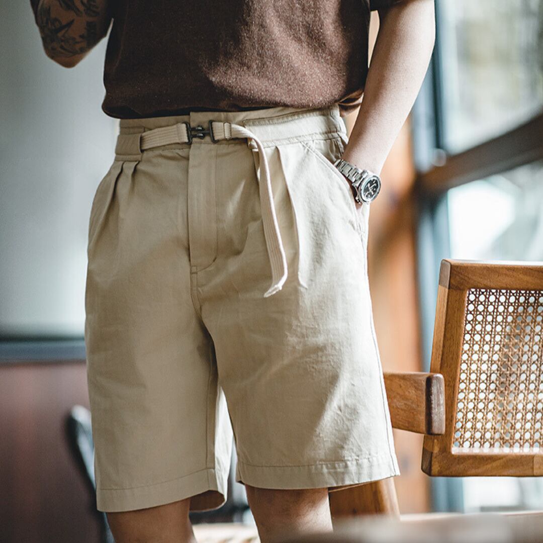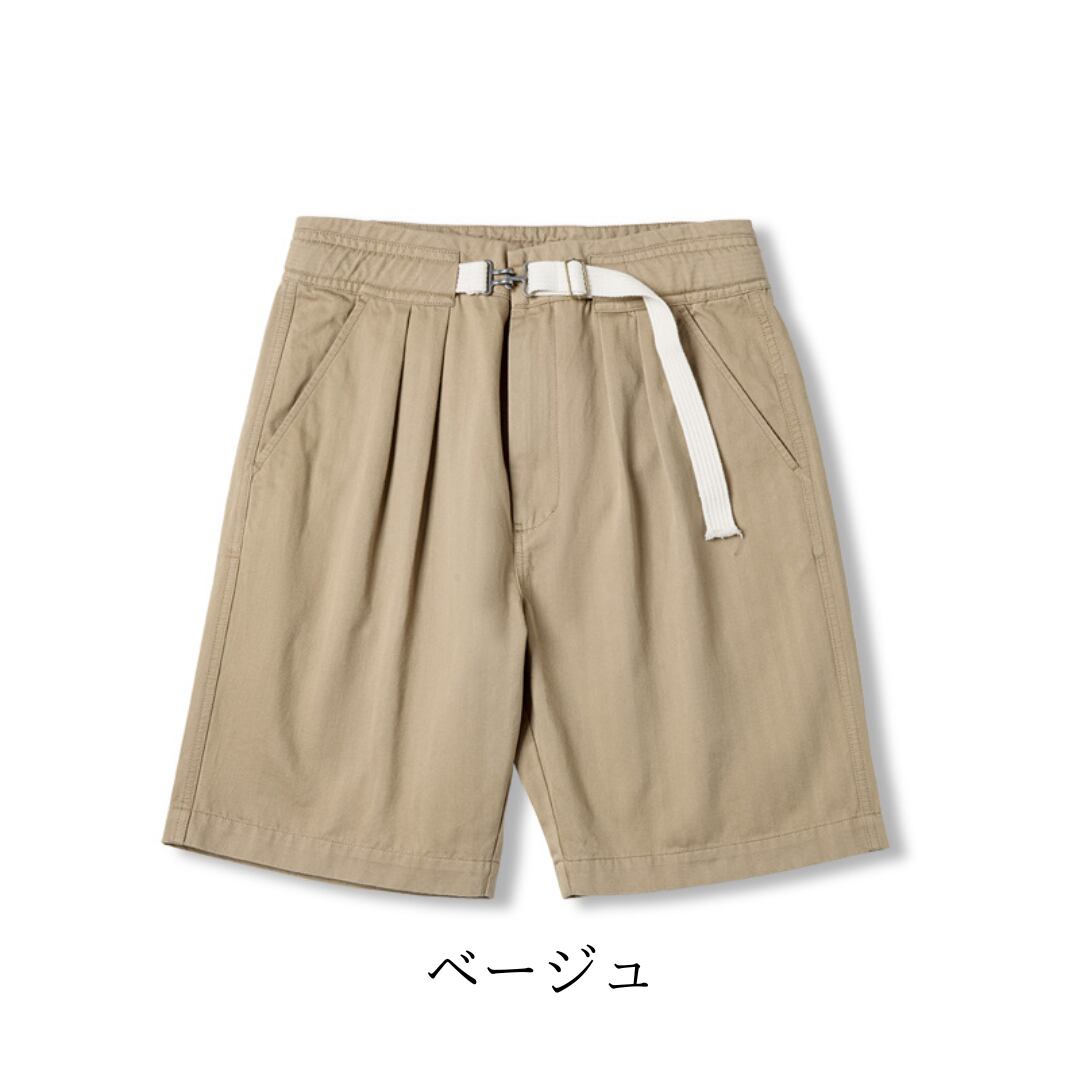 ベルト付きプリーツショートパンツ A18239