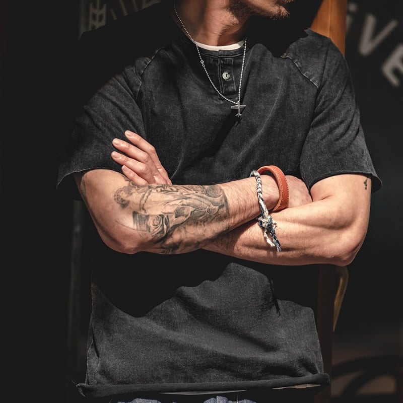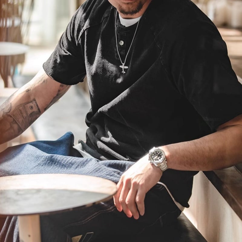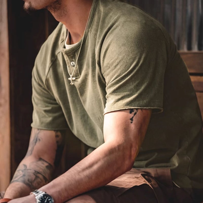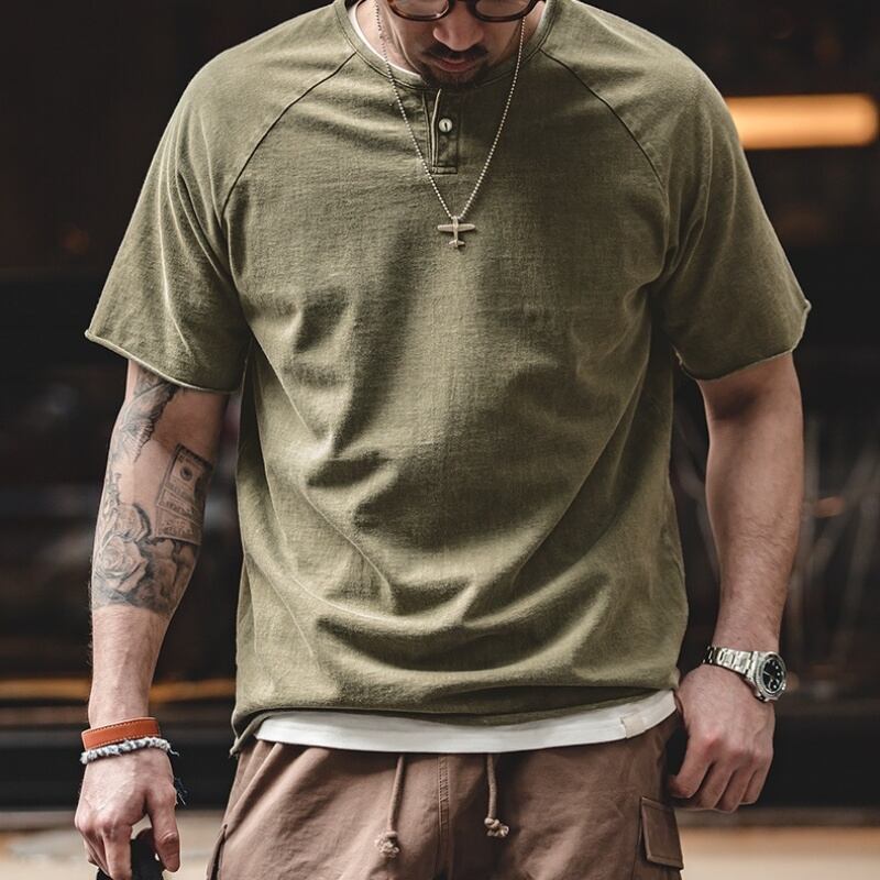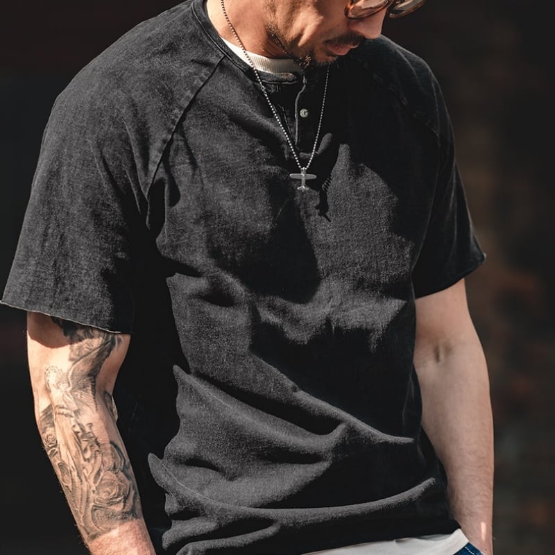 ヘンリーネックスリムフィット半袖Tシャツ A18187