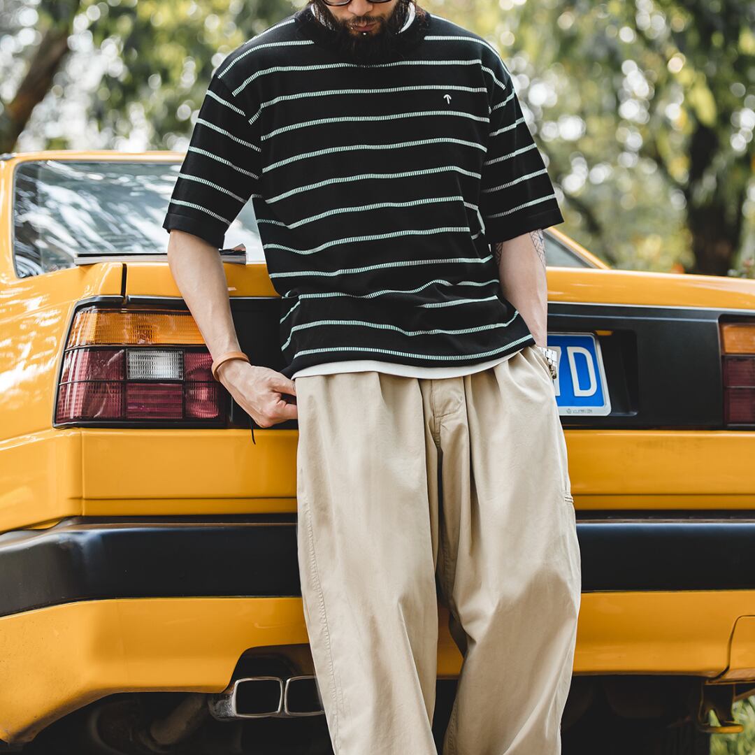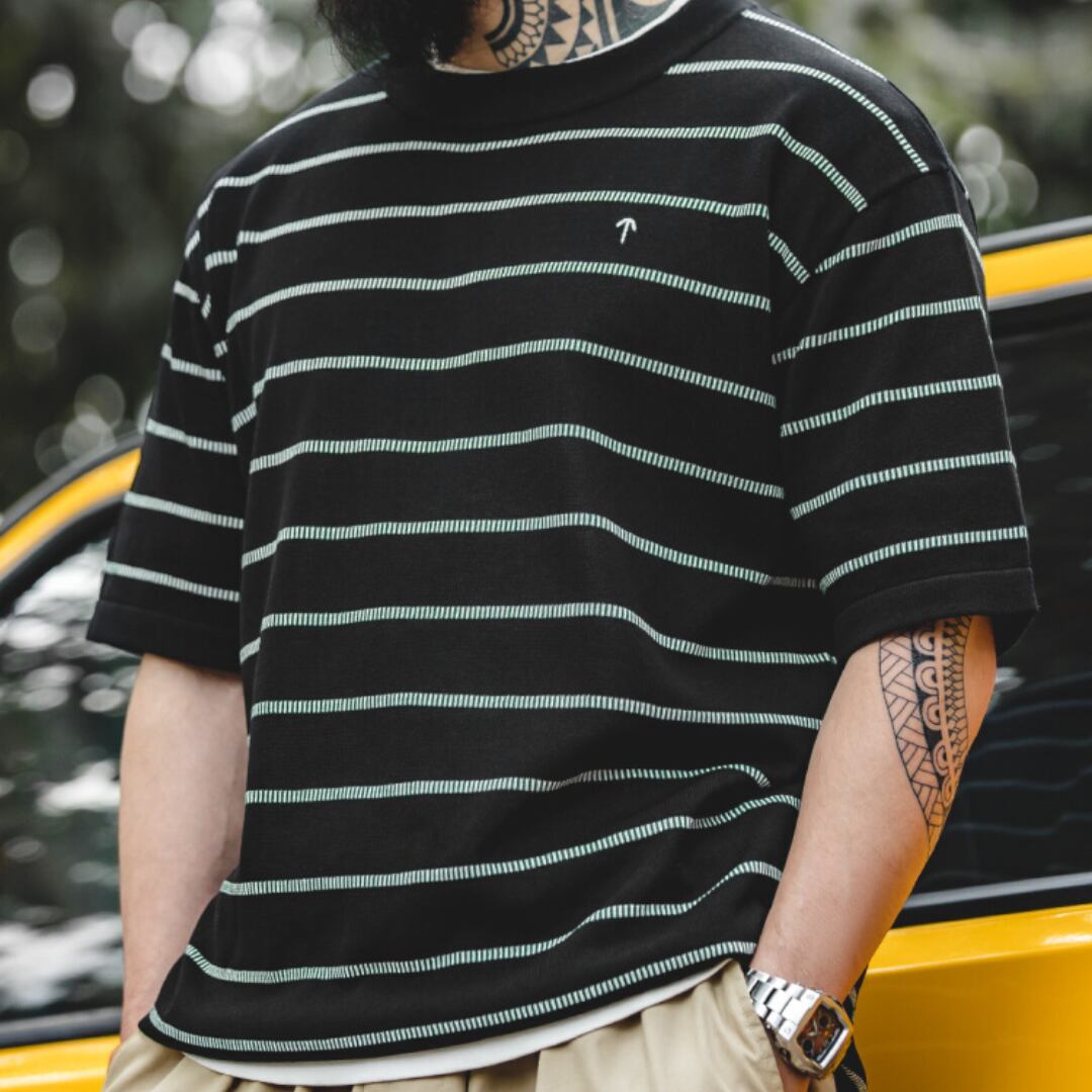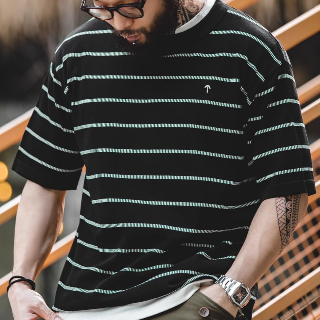 爽やかな着心地と洗練されたデザインが魅力のボーダー柄オーバーサイズ半袖Tシャツ。程よくゆとりのあるシルエットで、リラックスしたスタイリングを楽しめます。シンプルながらも存在感のあるデザインは、様々なボトムスと相性抜群。デイリーユースからカジュアルなシーンまで、幅広い場面で活躍します。