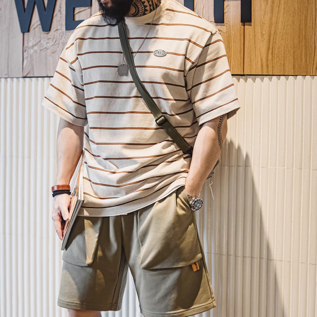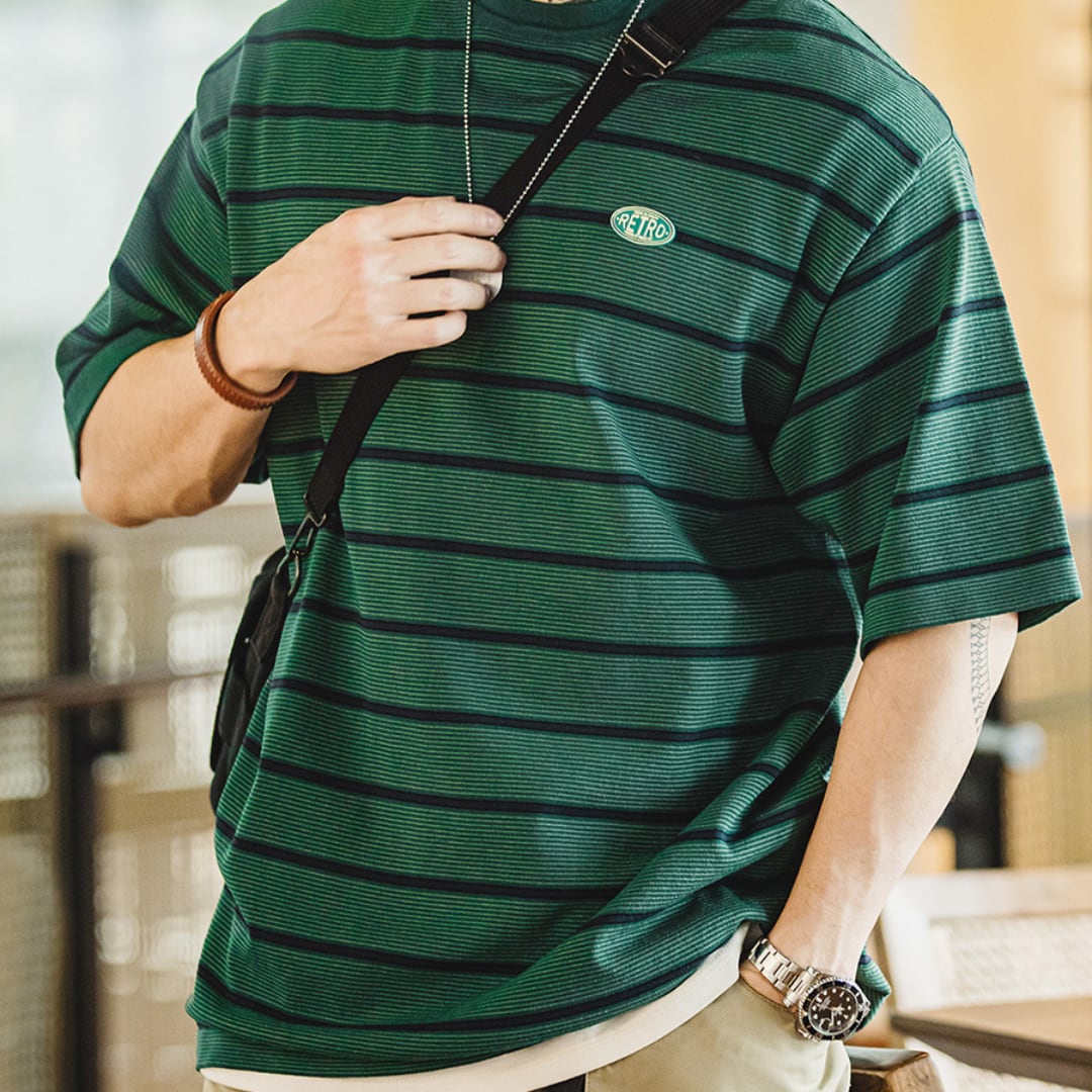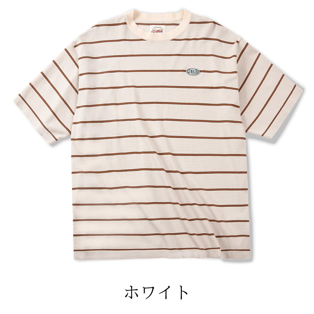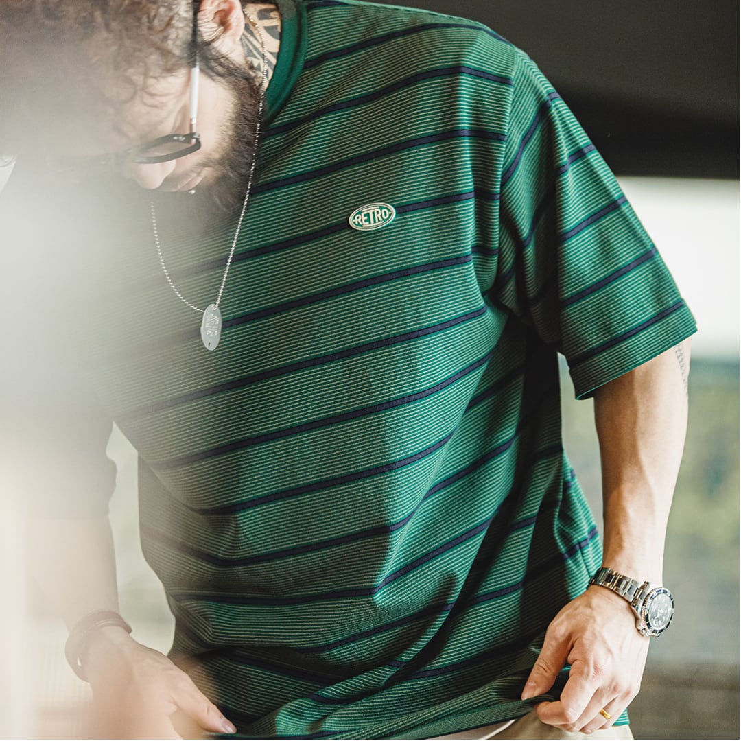 爽やかな着心地のボーダー柄半袖クルーネックTシャツ。